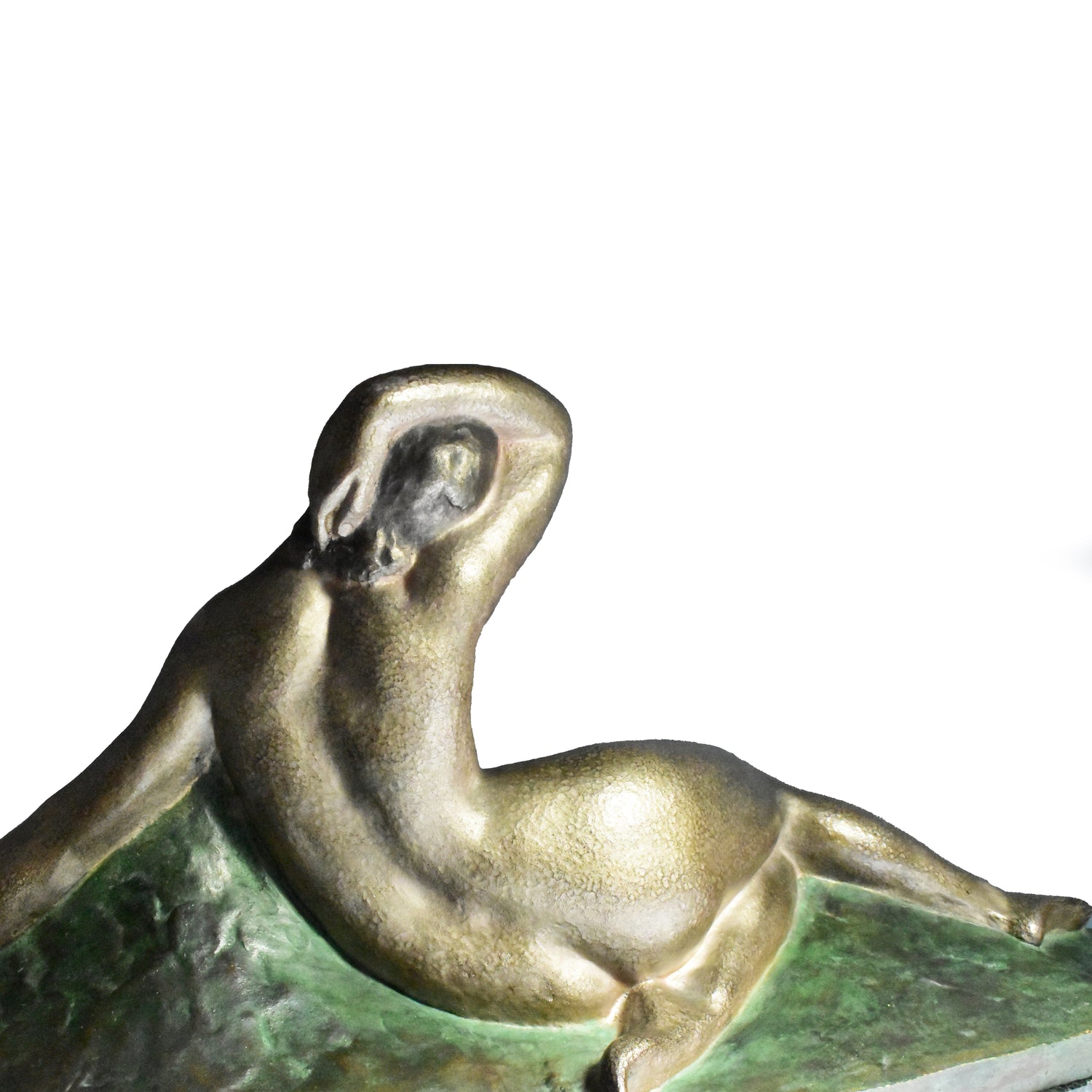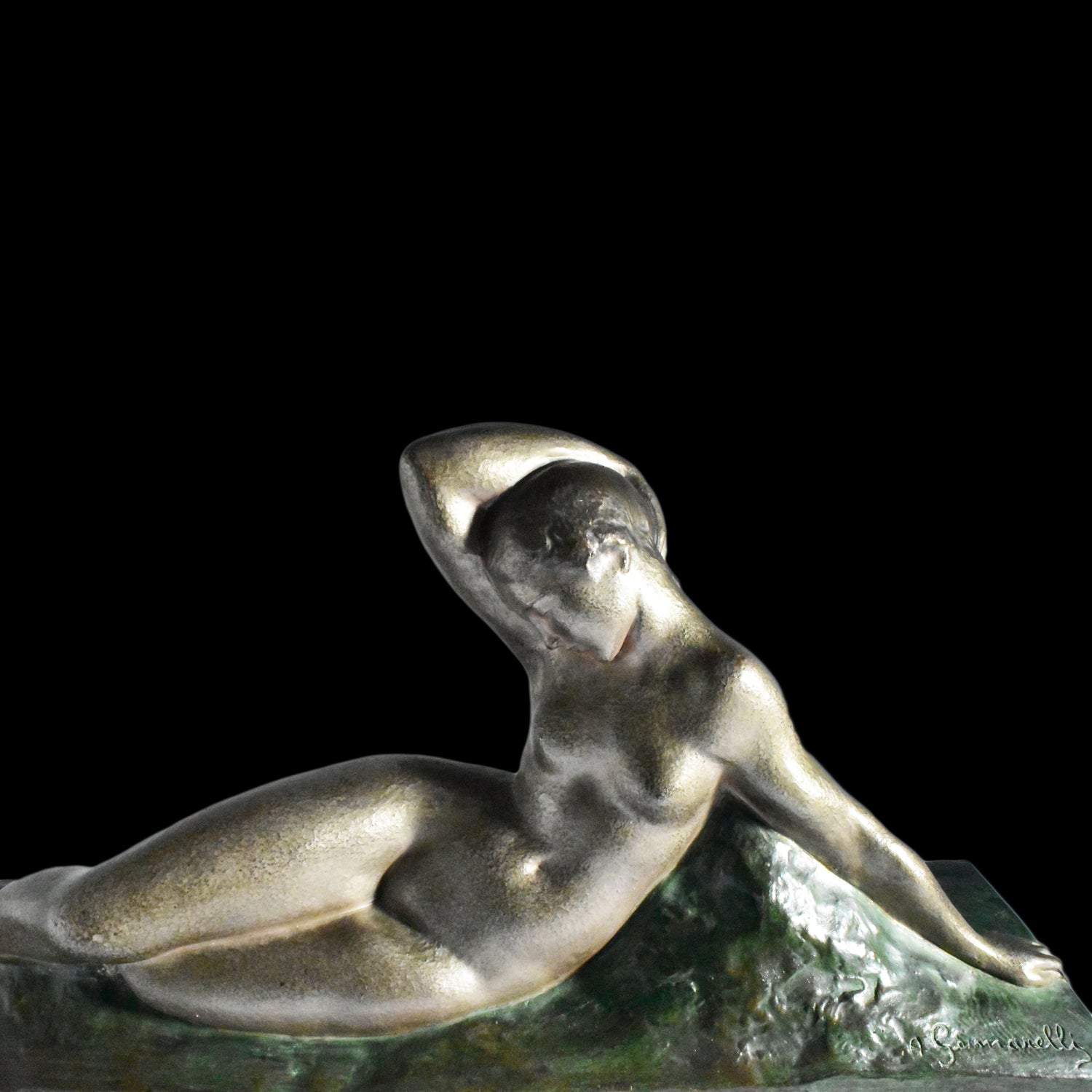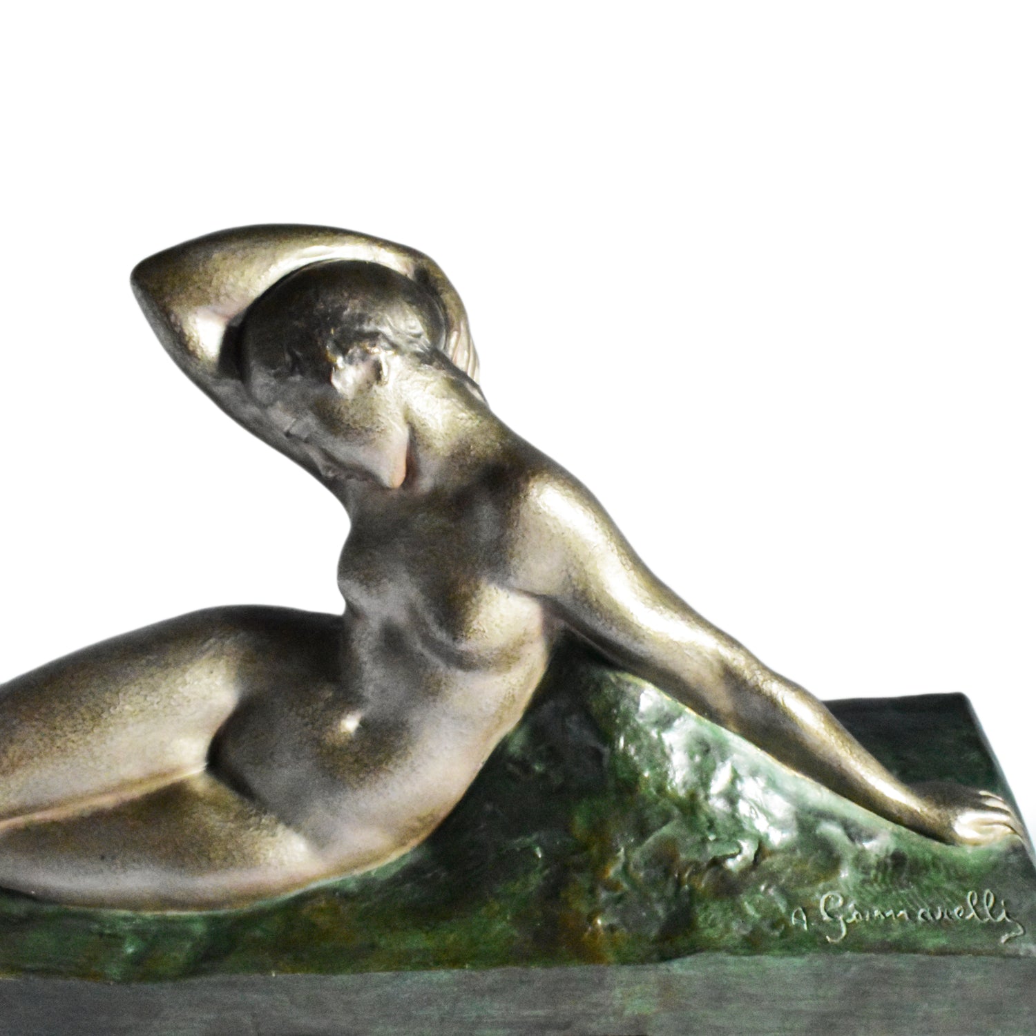 Amedeo Gennarelli ( Napels1891-Parijs1943). Rond 1909 verhuisde hij naar Parijs. Hij exposeerde van 1913 tot 1936 op de jaarlijkse Salon des Artistes Français in Parijs. Gennarelli werkte ook onder het pseudoniem 'Jean Ortis'(zie terra cotta in onze collectie). Gennarelli werkte met diverse materialen, zoals marmer, terra cotta en brons. Hij is vooral beroemd om zijn vrouwelijke naakten en zijn gevoelige kinderportretten. Zijn elegante art deco stijl en kwaliteit wordt hoog gewaardeerd en zijn werk is gezocht onder verzamelaars.