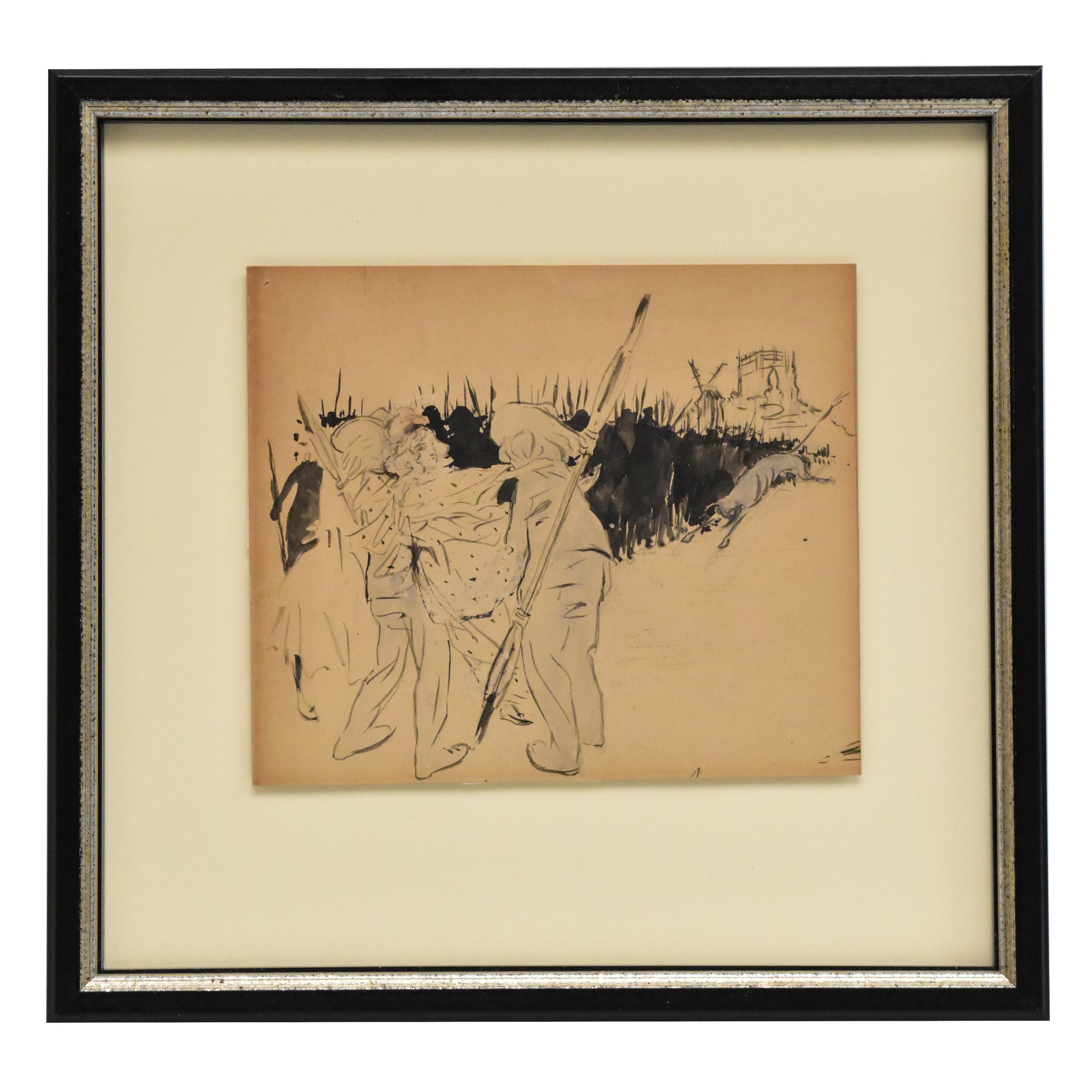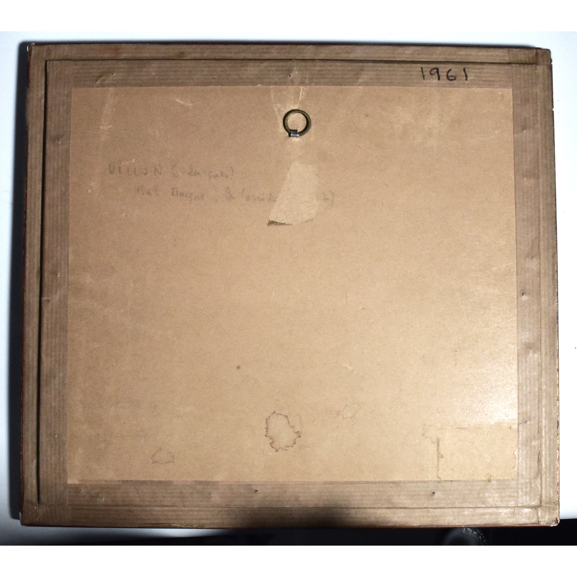 Vroeg werk van Jaques Villon, dat hij maakte als illustratie voor een van de tijdschriften waar hij toen voor werkte. Op de achterzijde van de oude inlijsting staat ook de titel; Bal Masque ( La Bastide....... )