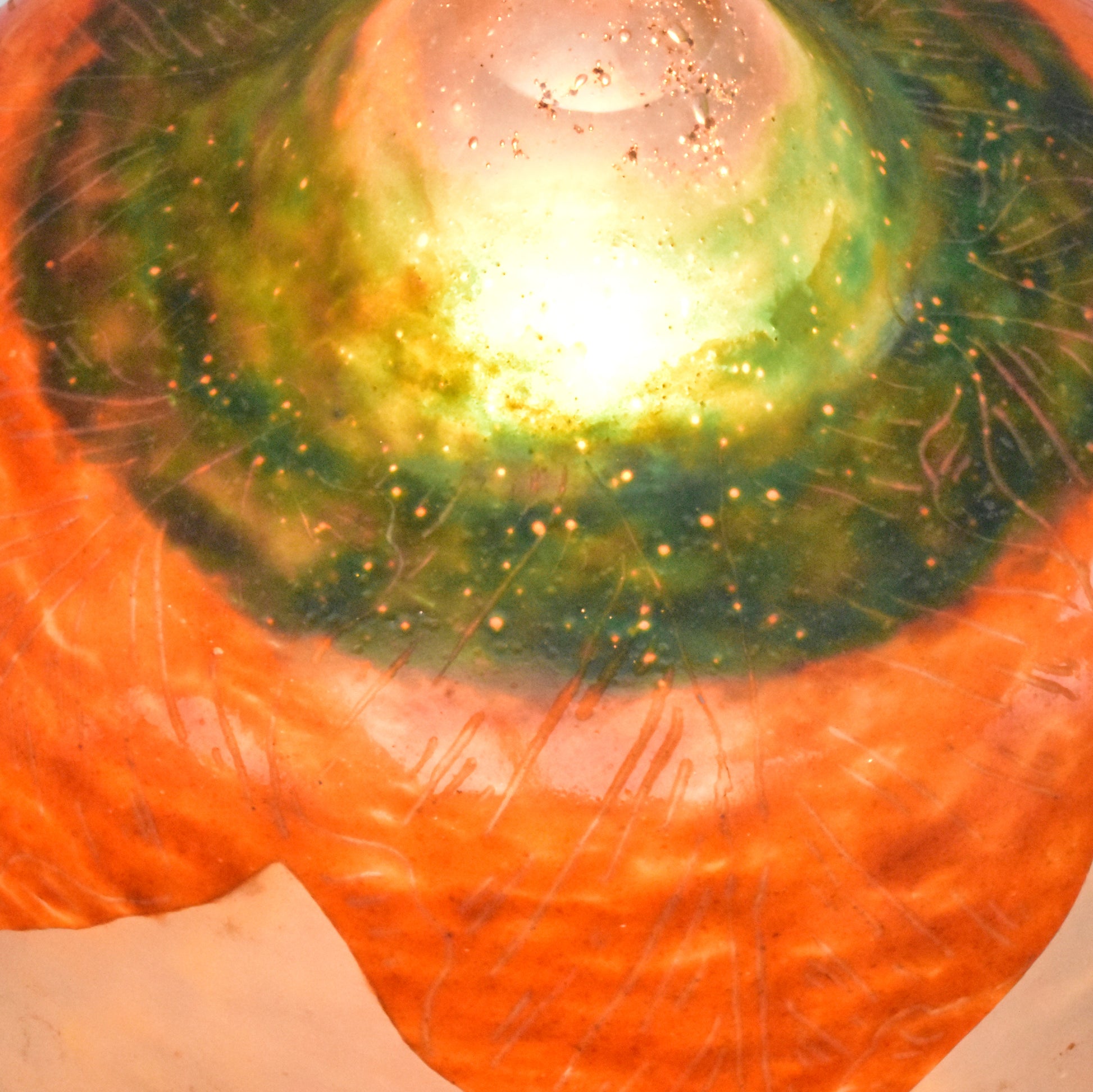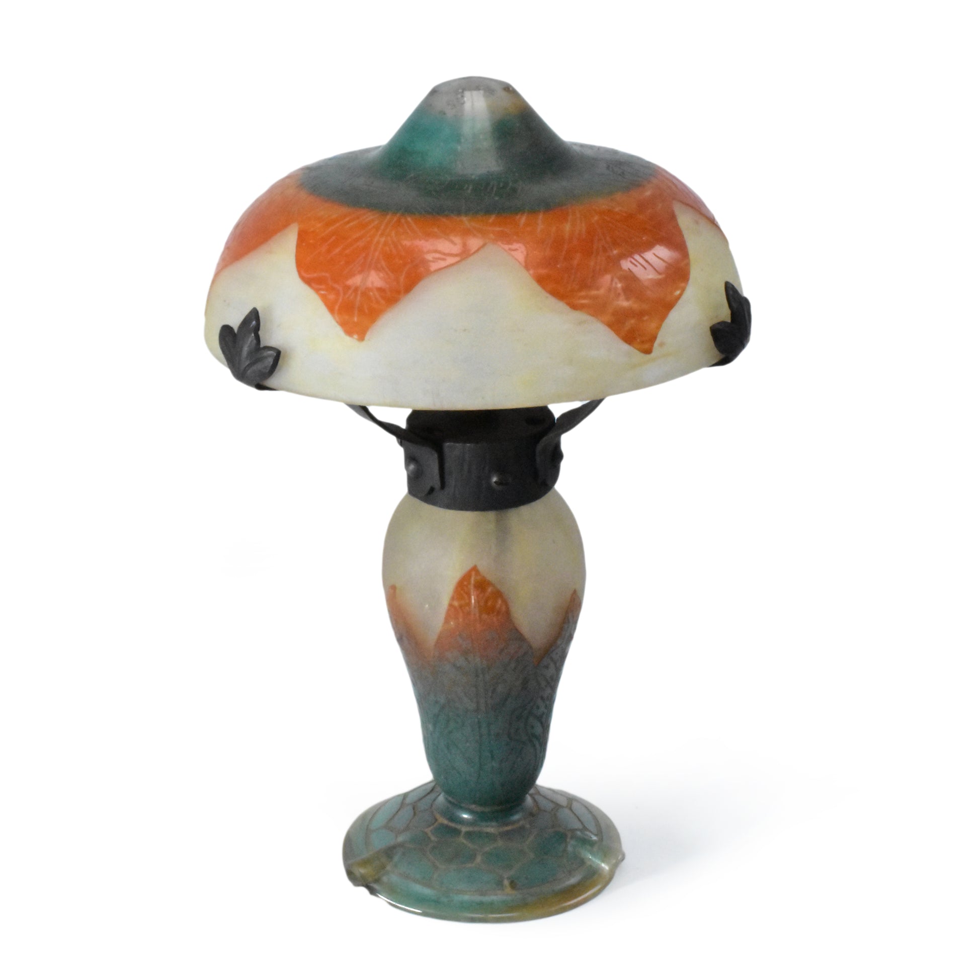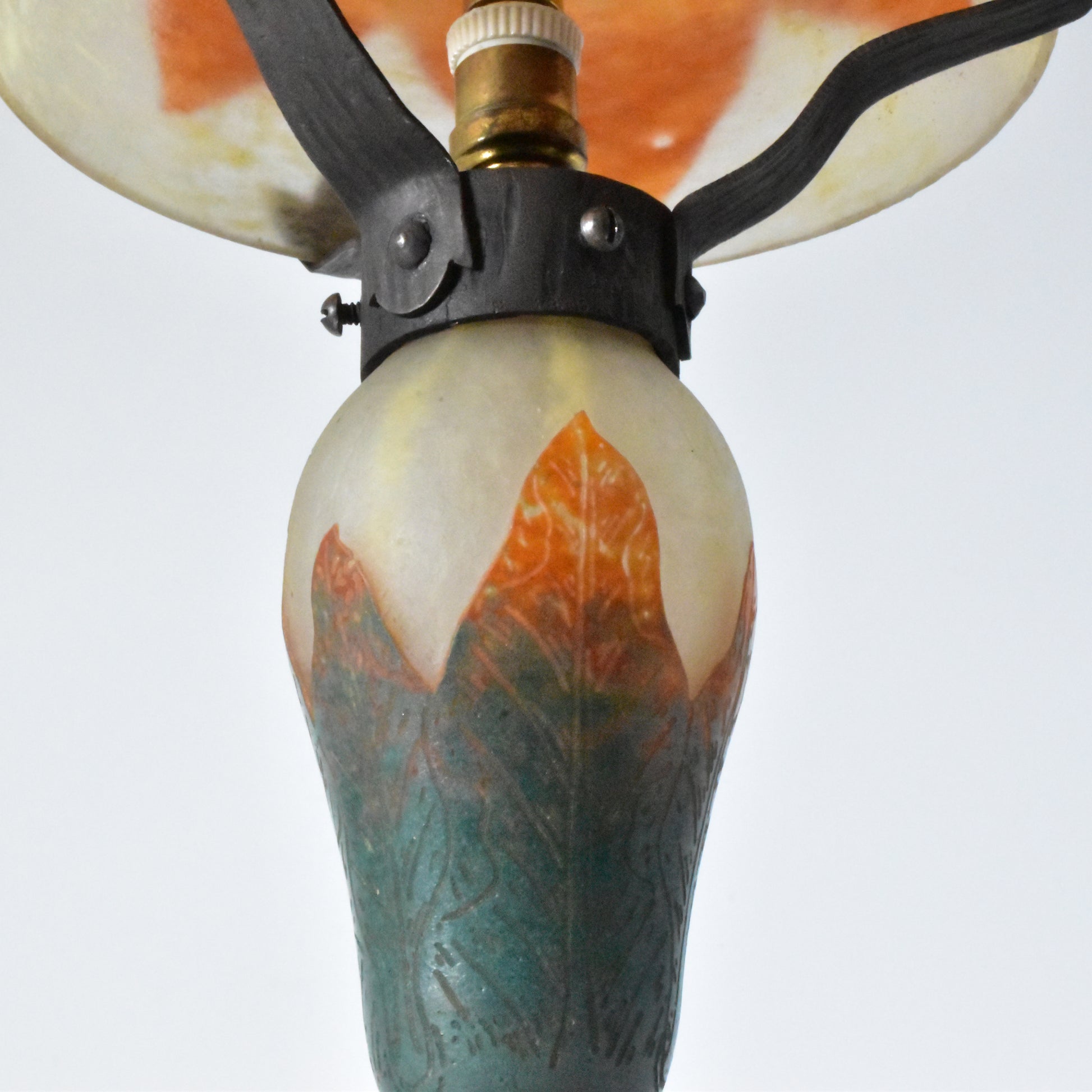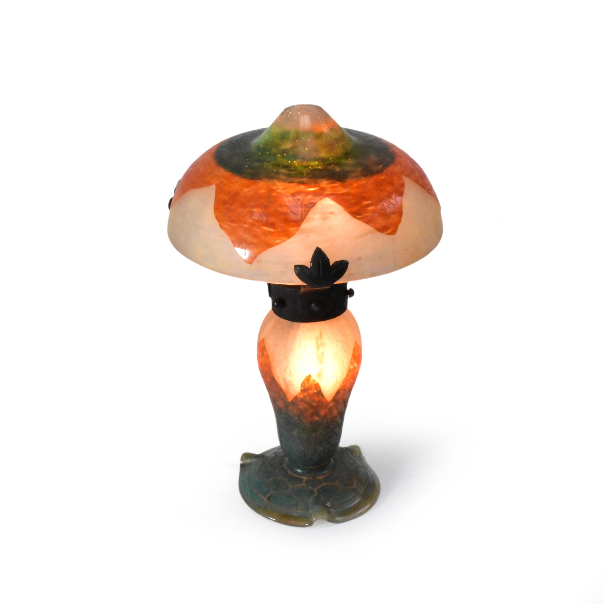Dit prachtige lampje is gesigneerd met de Berlingot op de basis van de lampvoet. Het lampje is geheel origineel met een fitting in de voet en eentje in de kap. De fittingen zijn geschikt voor kleine schroefdraad lampen, die gemakkelijk in LED verkrijgbaar zijn. Het meest bijzondere aan dit mooi gekleurde lampje is het kleine formaat, dat dit stuk van Le Verre Francais extra aimable maakt.