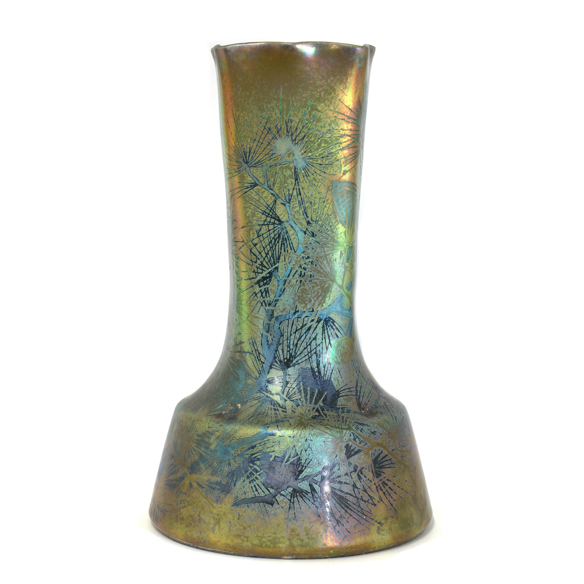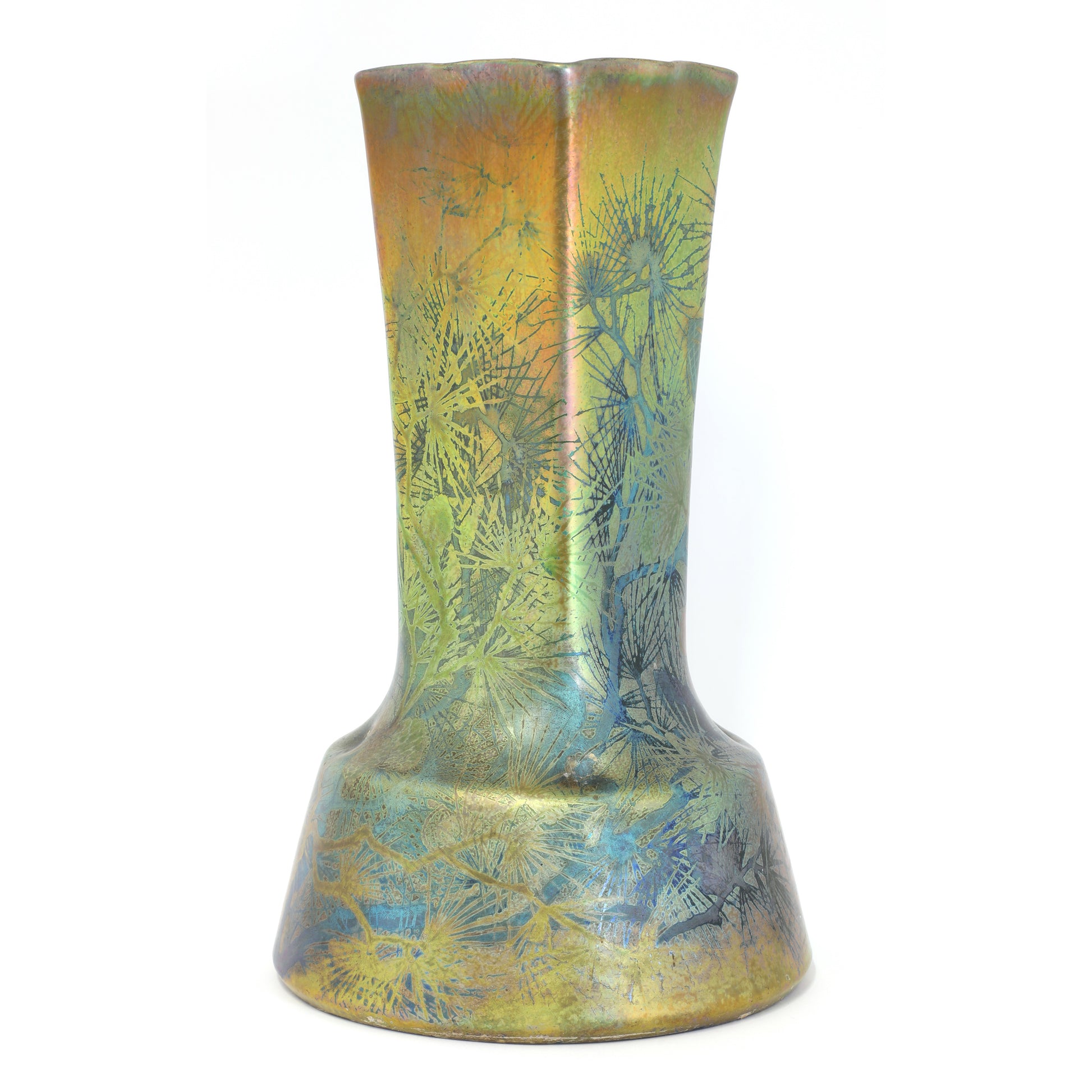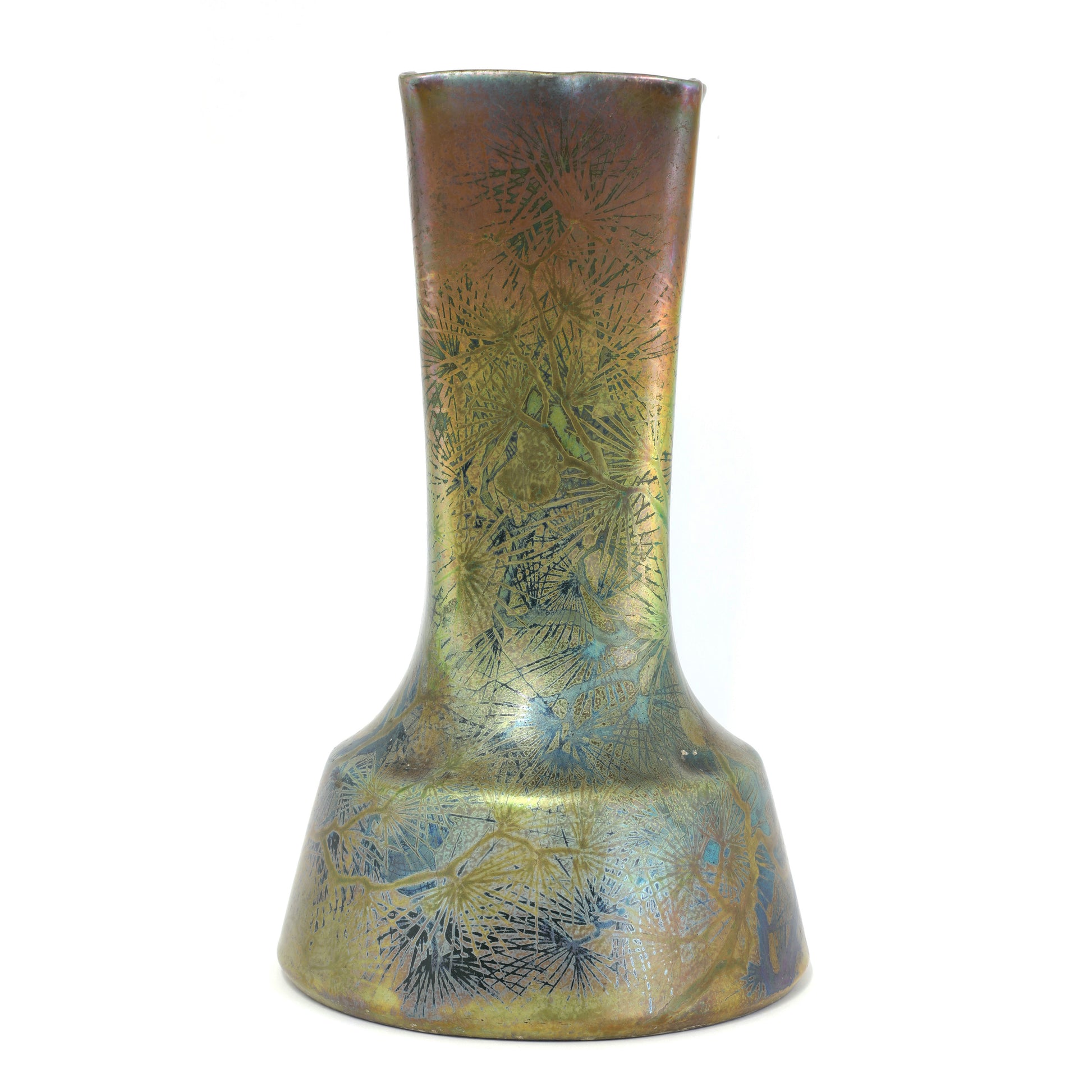 Clement Massier's reflets metaliques vases are world famous. Clement Massier has made efforts to discover luster glaze since 1880. In the 1990s he managed to create these ceramics together with the artist Luciën Levy and Italian ceramist Gaziëllo. He established a palatial showroom in Golfe Juan near the place where the wealthy seaside guests arrived on the Cote D'Azur on the new railway line. It is therefore not surprising that his work ended up in royal and noble collections. But he also achieved great success at the World Exhibition in Paris and won the gold medal for his discovery and artistic quality.