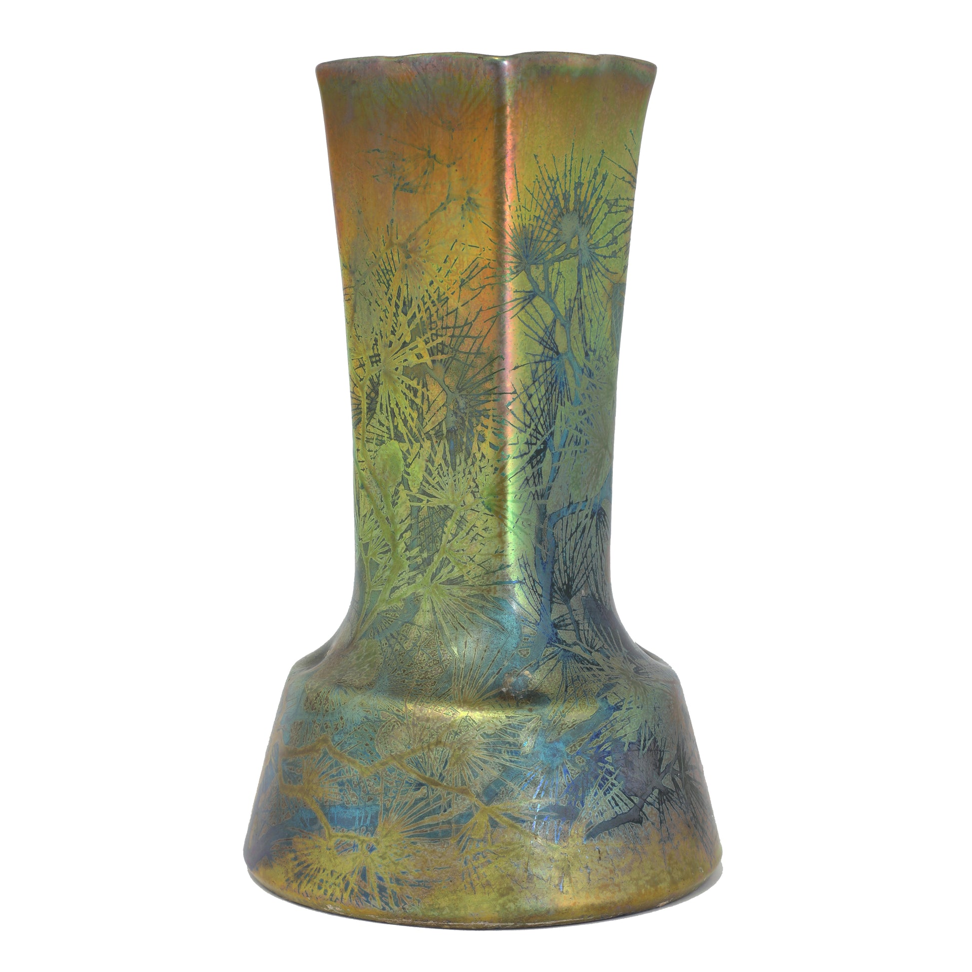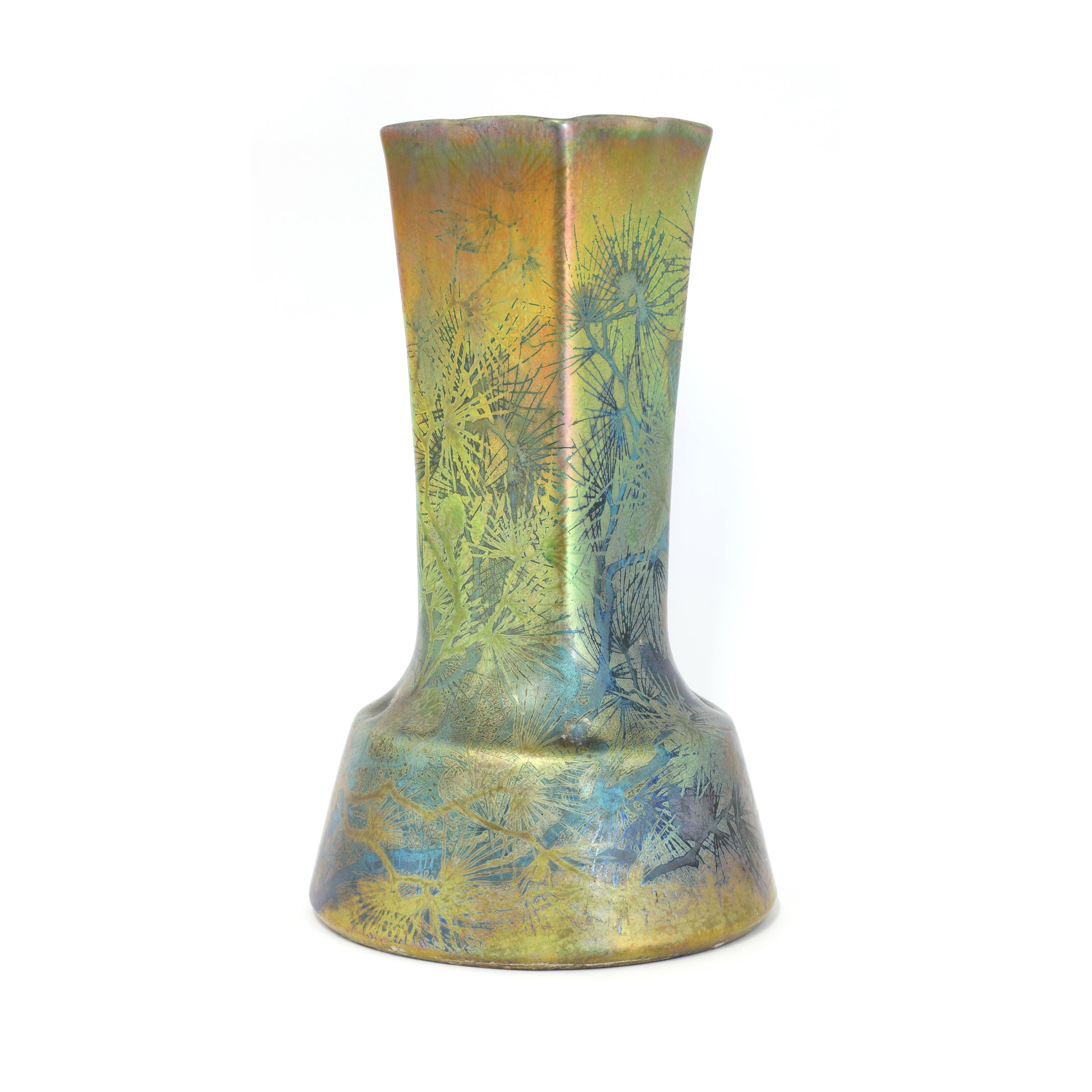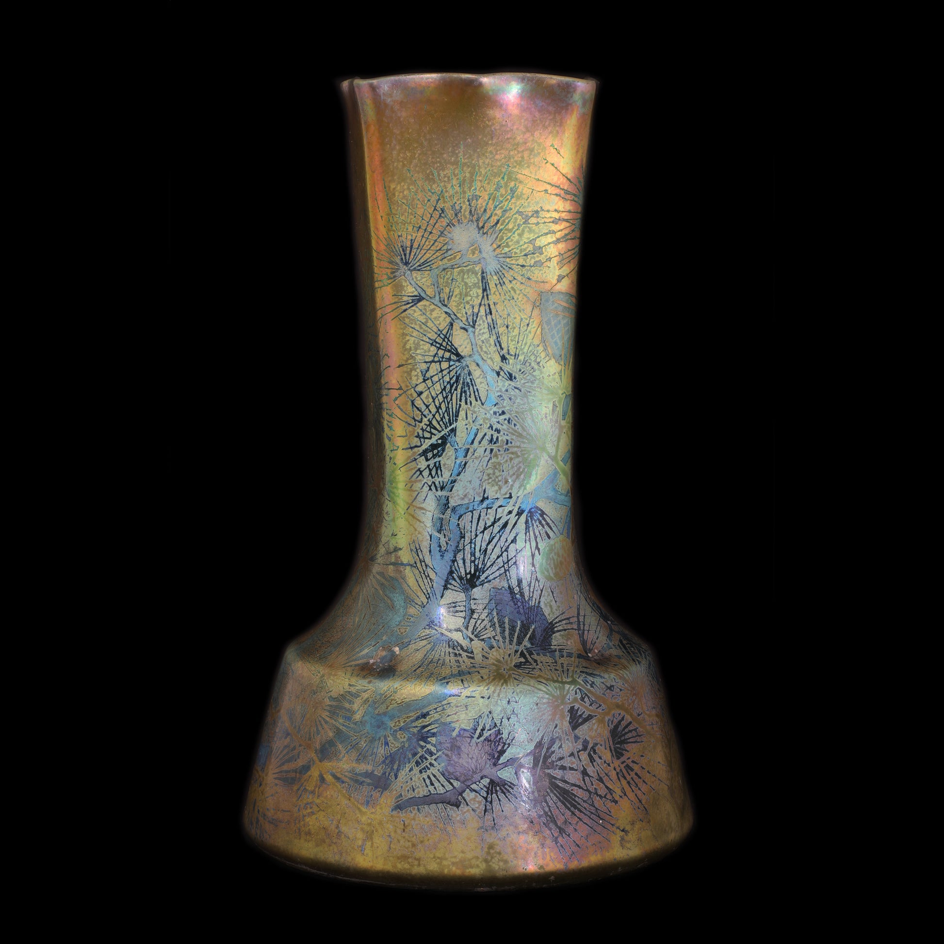 Clement Massier's reflets metaliques vases are world famous. Clement Massier has made efforts to discover luster glaze since 1880. In the 1990s he managed to create these ceramics together with the artist Luciën Levy and Italian ceramist Gaziëllo. He established a palatial showroom in Golfe Juan near the place where the wealthy seaside guests arrived on the Cote D'Azur on the new railway line. It is therefore not surprising that his work ended up in royal and noble collections. But he also achieved great success at the World Exhibition in Paris and won the gold medal for his discovery and artistic quality.