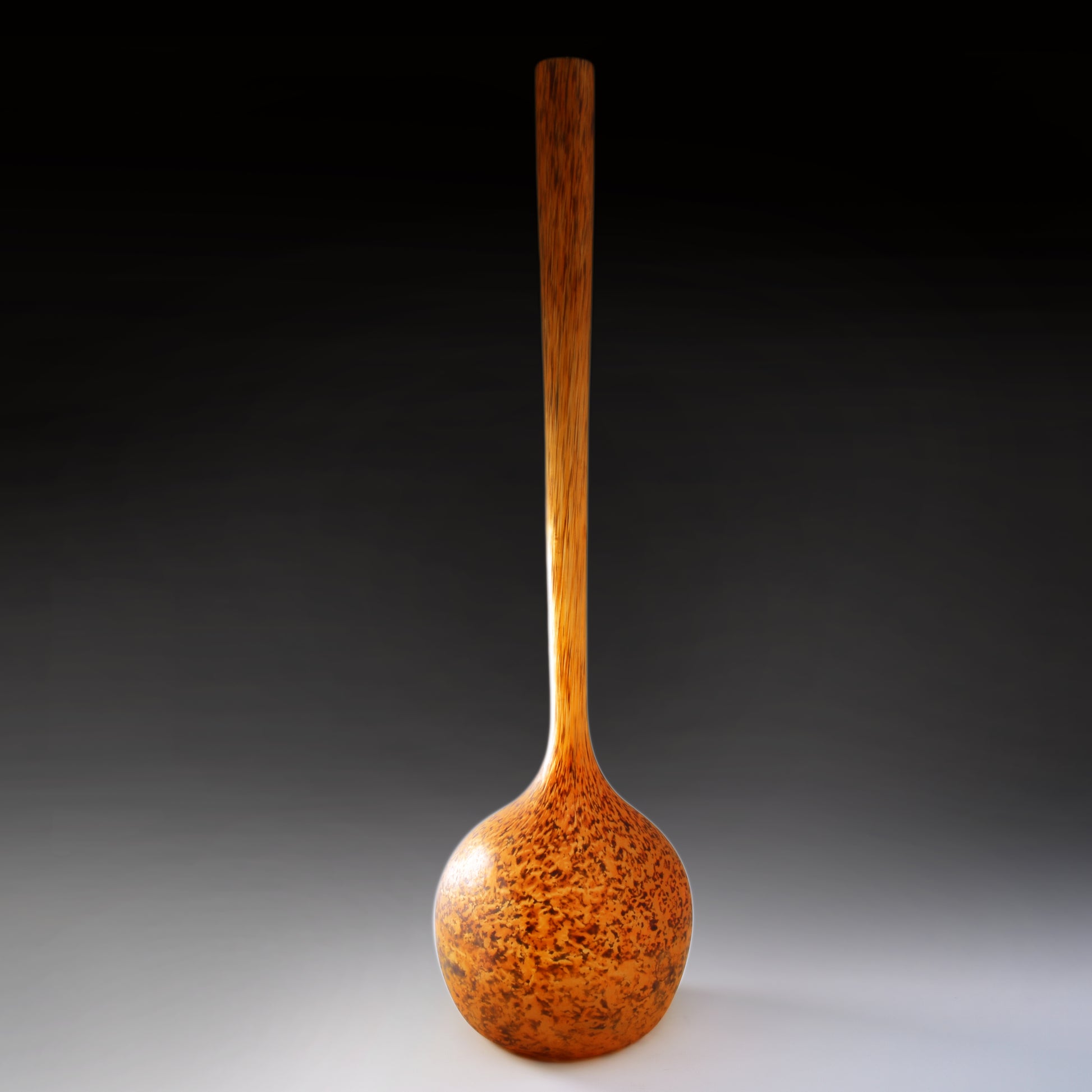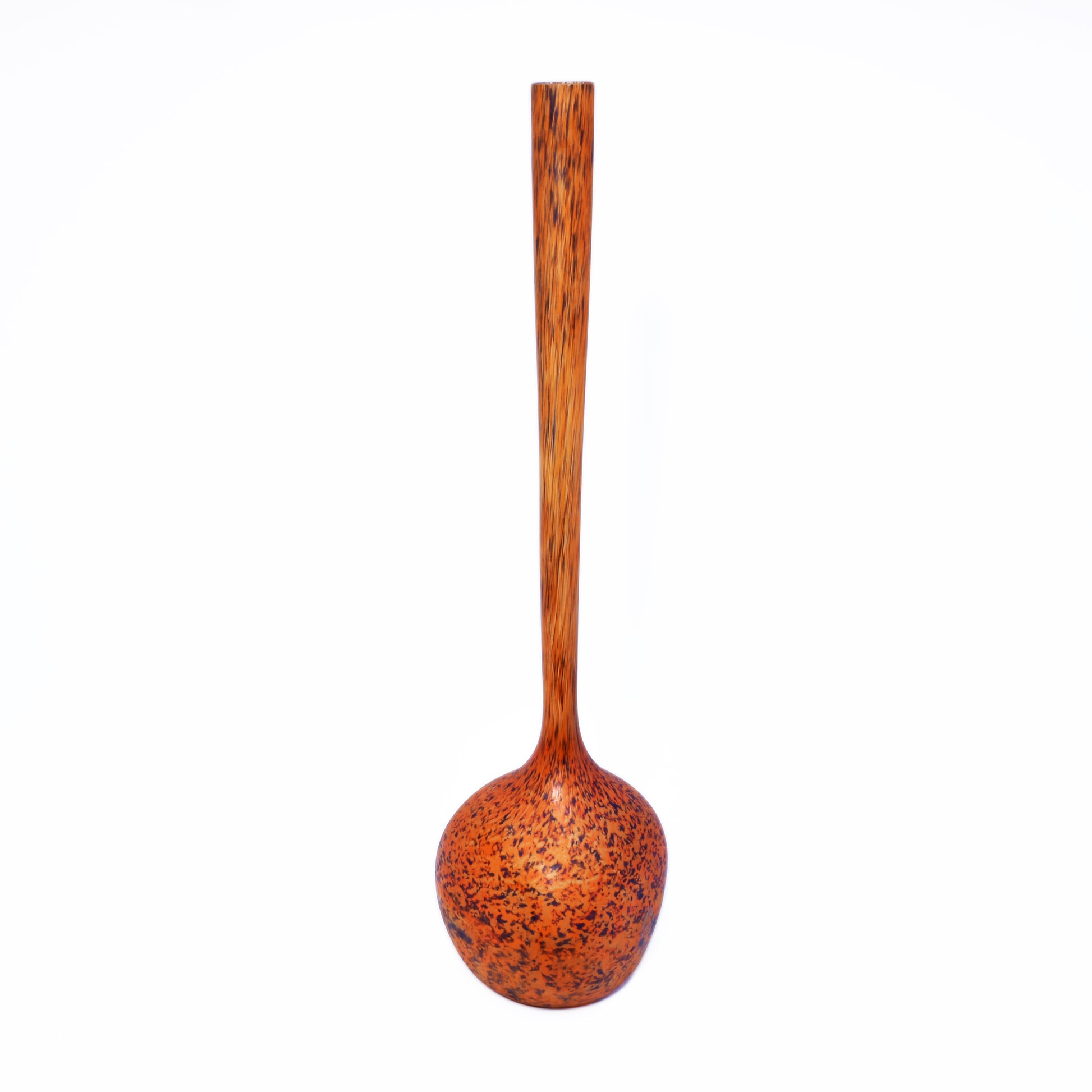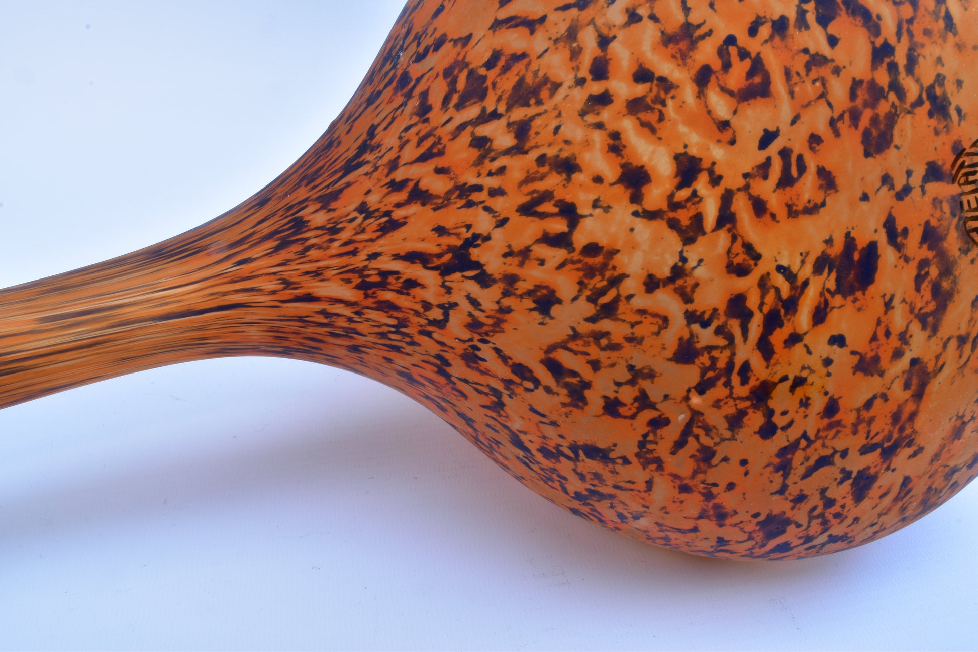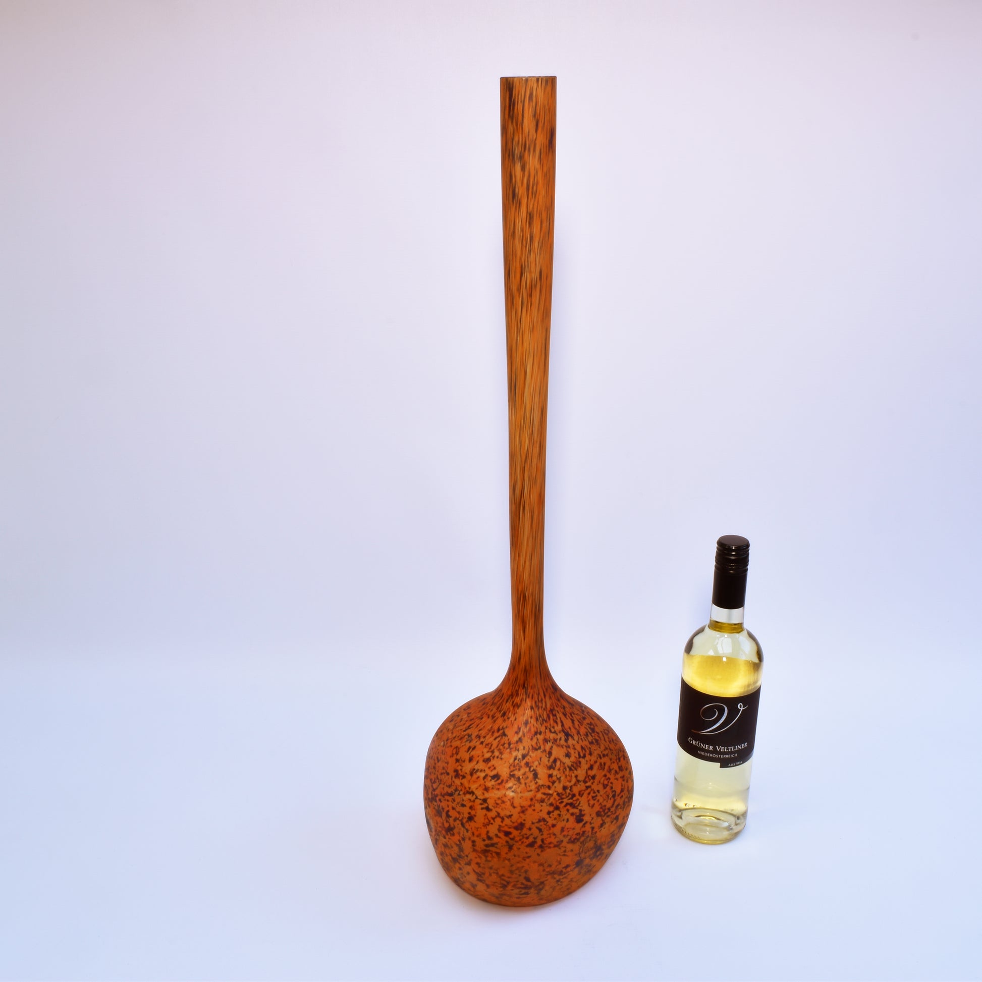 Grote vloervaas, solifleur van André delatte uit Nancy. Deze typische art nouveau vaas is vergelijkbaar met de berluzes van Daum uit Nancy. Het glas bevat meer diverse kleuren insluitsels en grotere contrasten. De glaspoeders werden bij Delatte tijdens het maakproces later opgebracht dan bij Daum. daardoor zijn de vlekken kleiner en veel minder met de vorm uitgeblazen. Deze vazen zijn nog steeds modern en zijn ook erg decoratief in een hedendaags interieur.