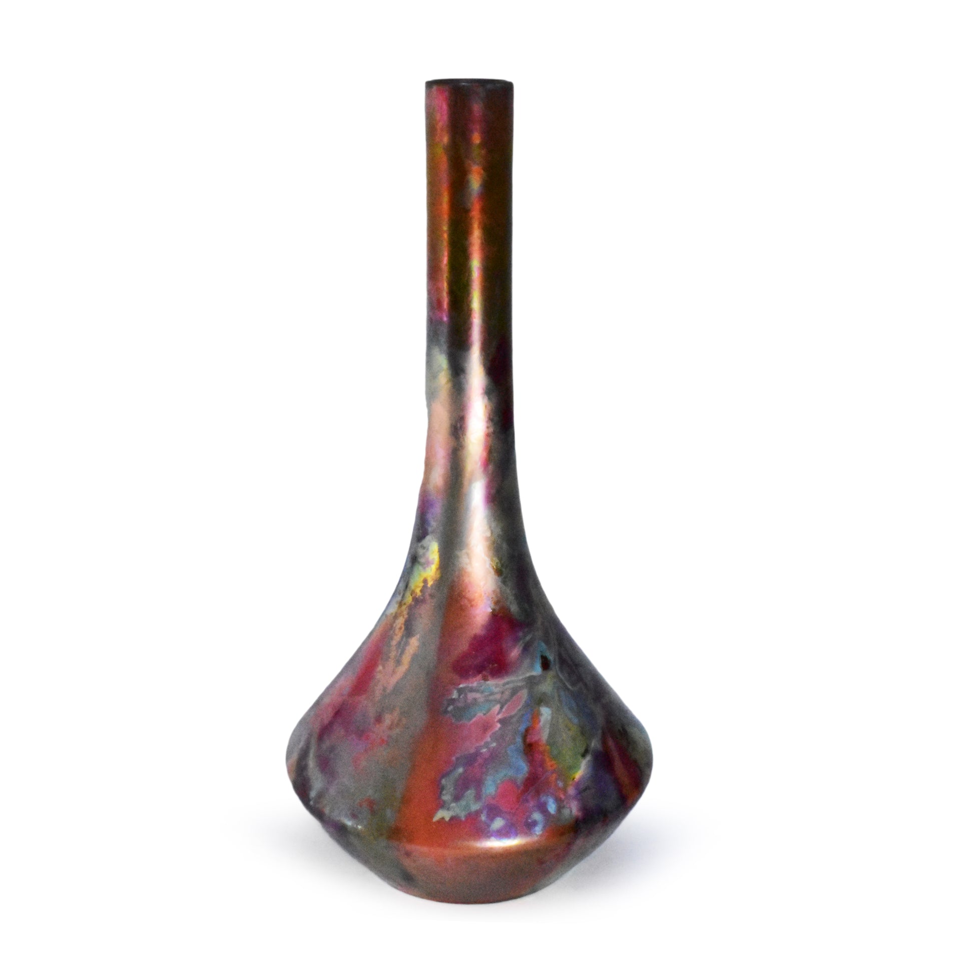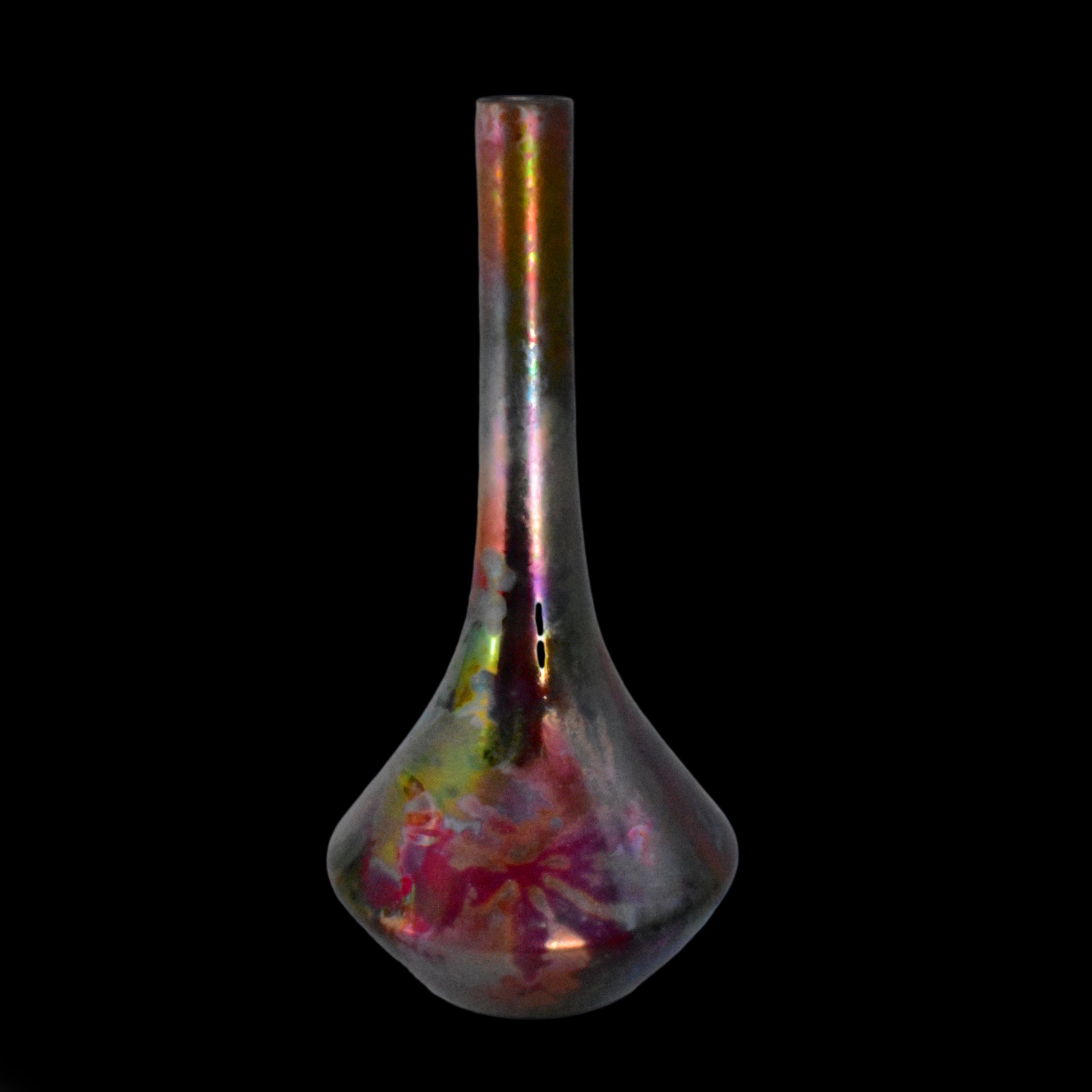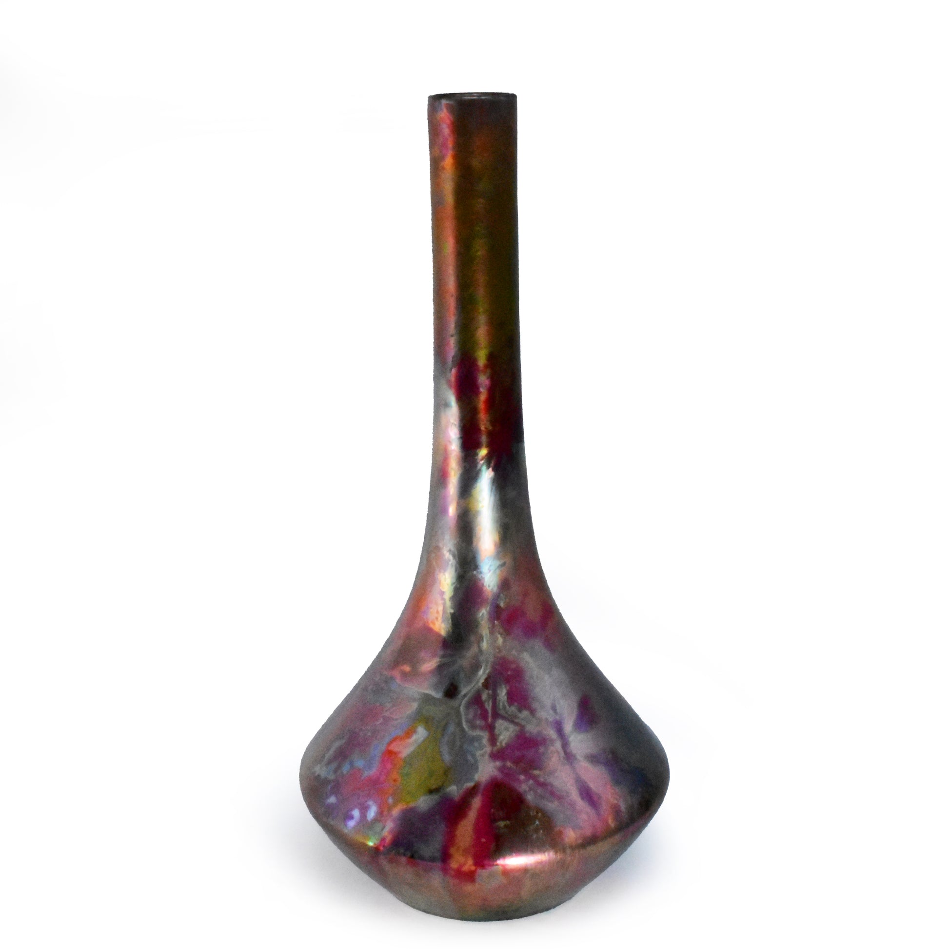 Deze grote vaas van Clement Massier dateerd van 1900. De met zilver en koperoxiden gemaakte lustreglazuur is prachtig diep van kleur. Het motief is de wilde wijn. De schilderachtige kleuren en de impressionistische wijze waarop het decor is aangebracht maken deze vaas tot een groot kunstwerk. Massier heeft hier dan ook wereldwijd succes mee gehad en zijn vazen zijn in het bezit van vele grote musea over heel de wereld. Bij ons is dat o.a. het Rijksmuseum in Amsterdam.