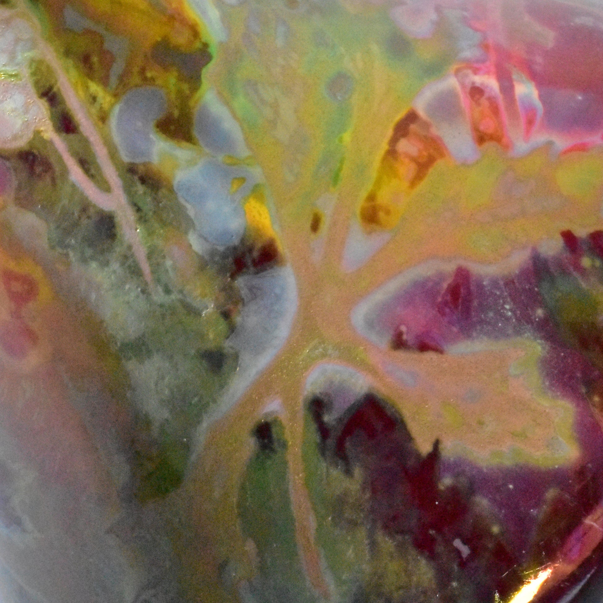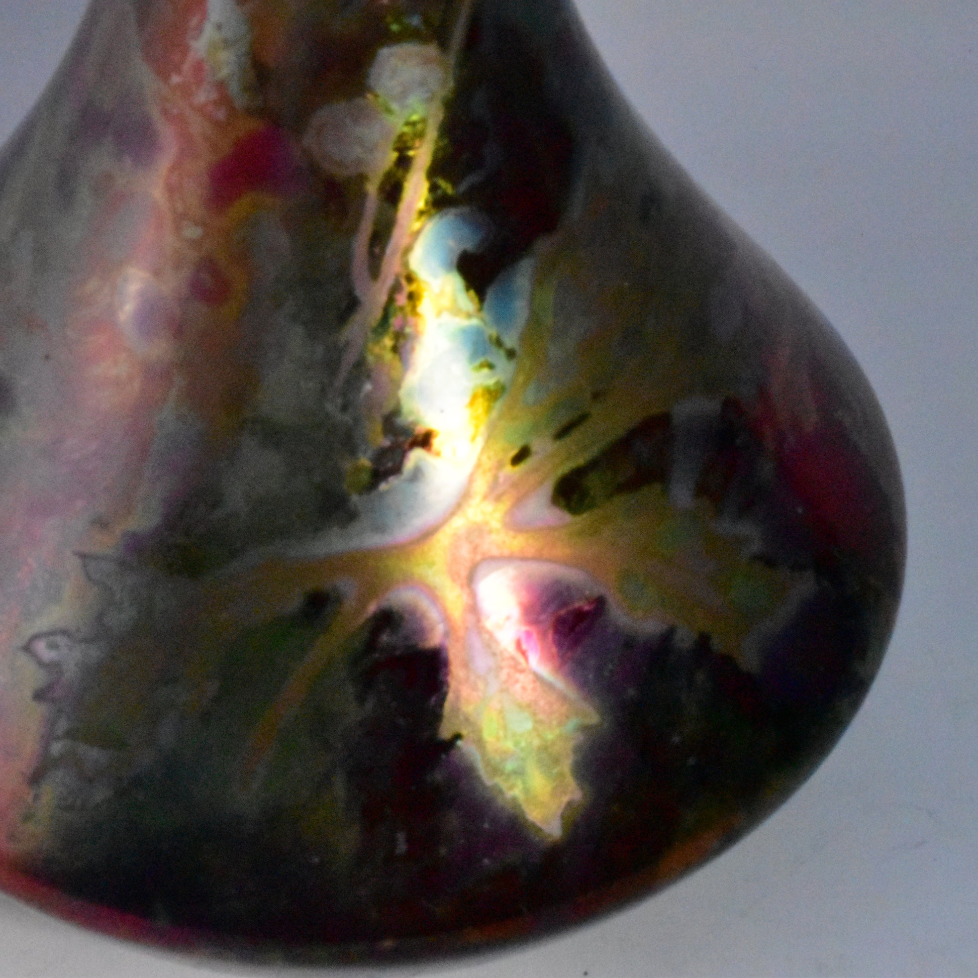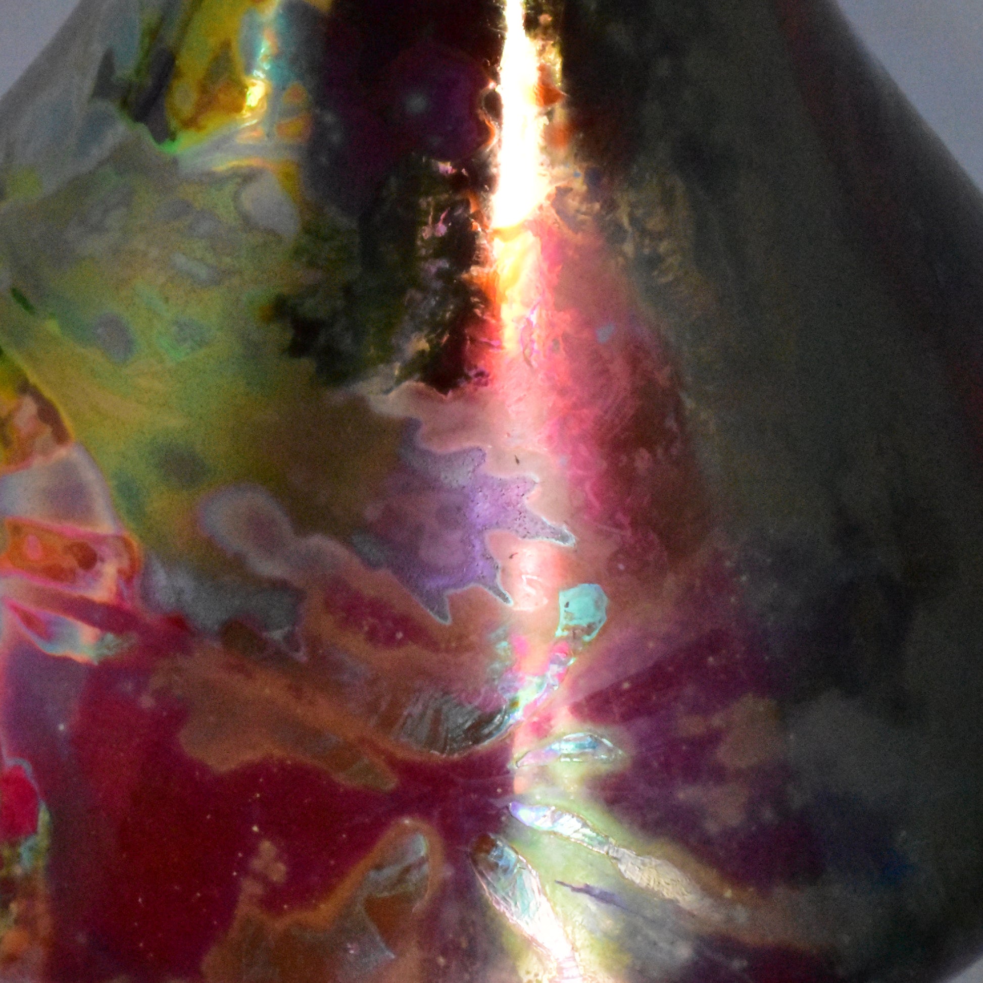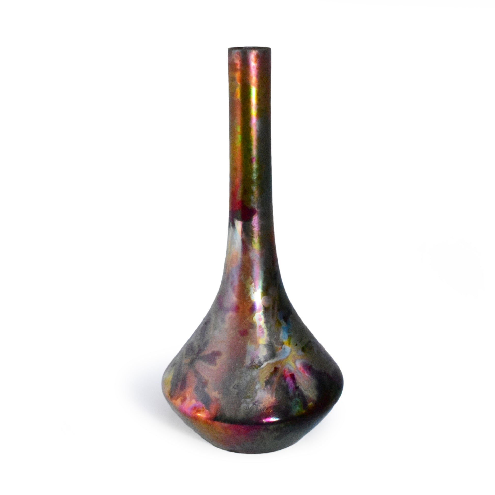 Deze grote vaas van Clement Massier dateerd van 1900. De met zilver en koperoxiden gemaakte lustreglazuur is prachtig diep van kleur. Het motief is de wilde wijn. De schilderachtige kleuren en de impressionistische wijze waarop het decor is aangebracht maken deze vaas tot een groot kunstwerk. Massier heeft hier dan ook wereldwijd succes mee gehad en zijn vazen zijn in het bezit van vele grote musea over heel de wereld. Bij ons is dat o.a. het Rijksmuseum in Amsterdam.