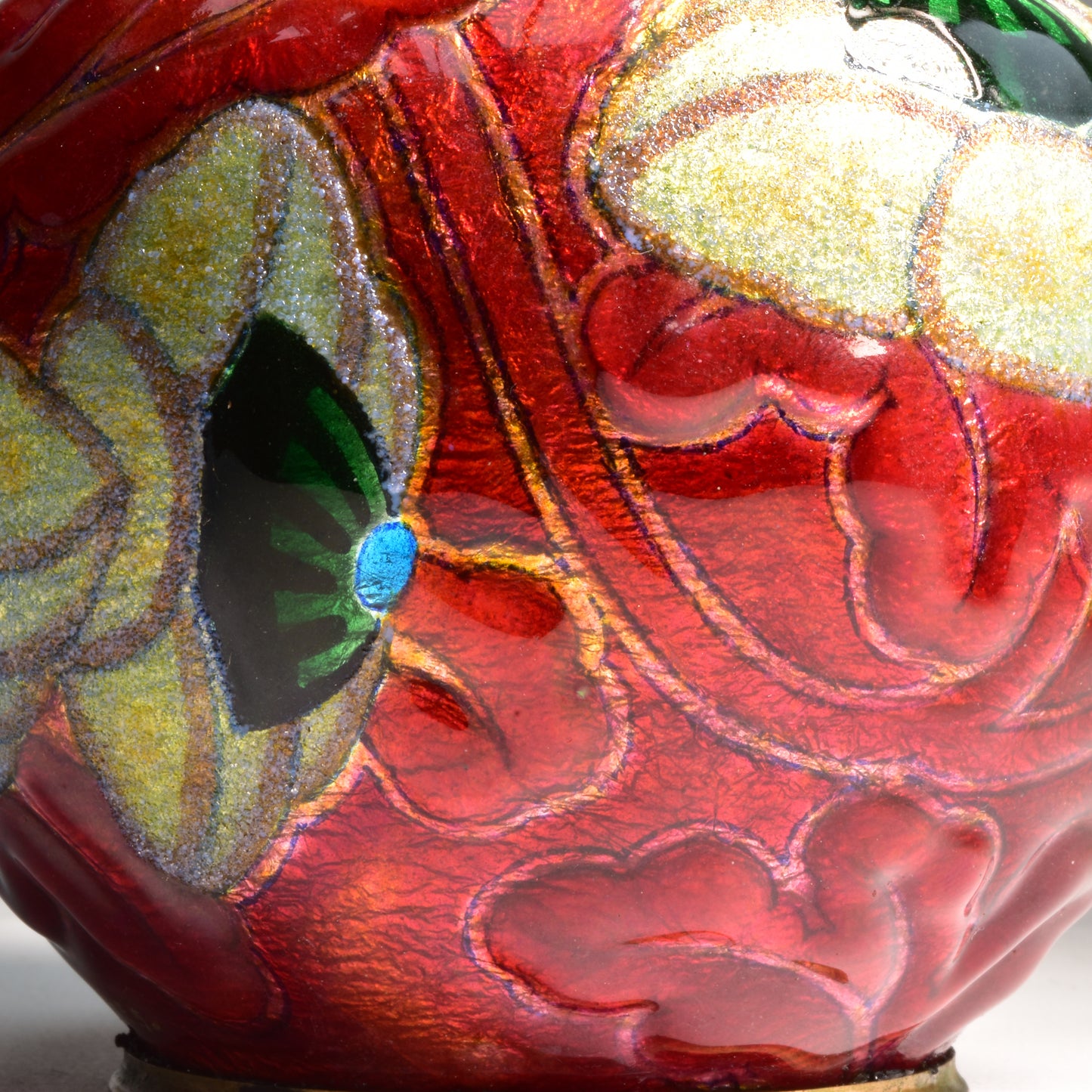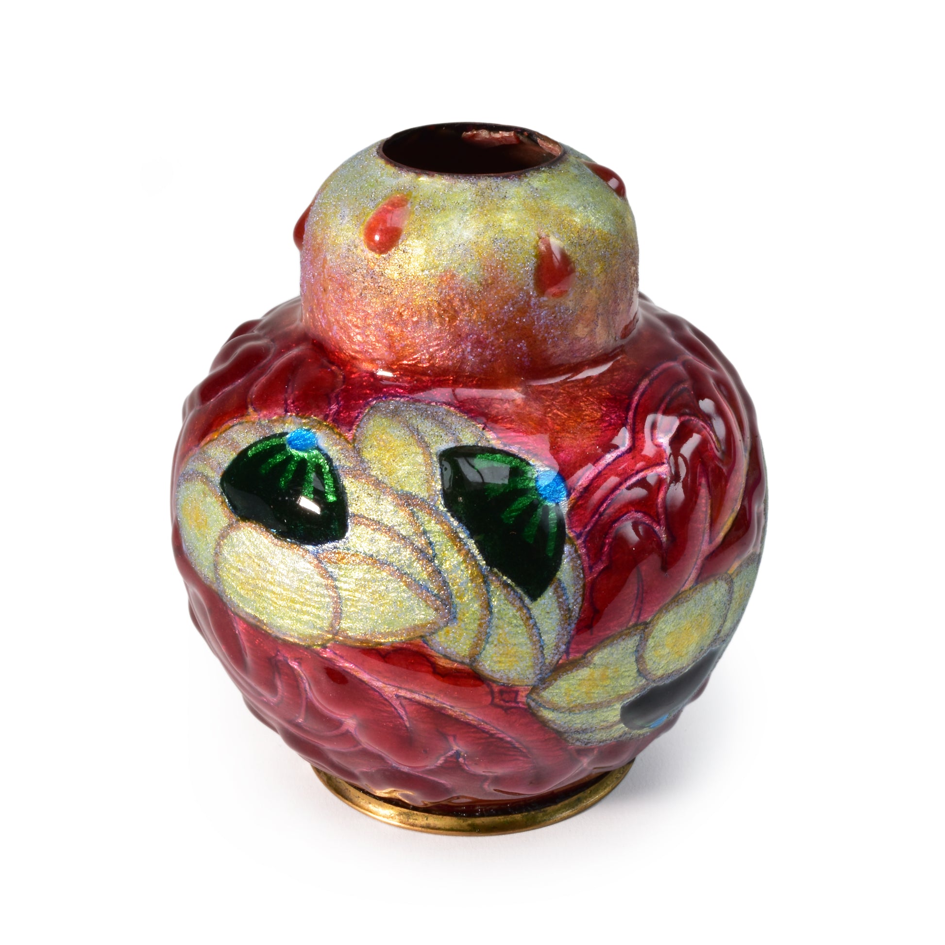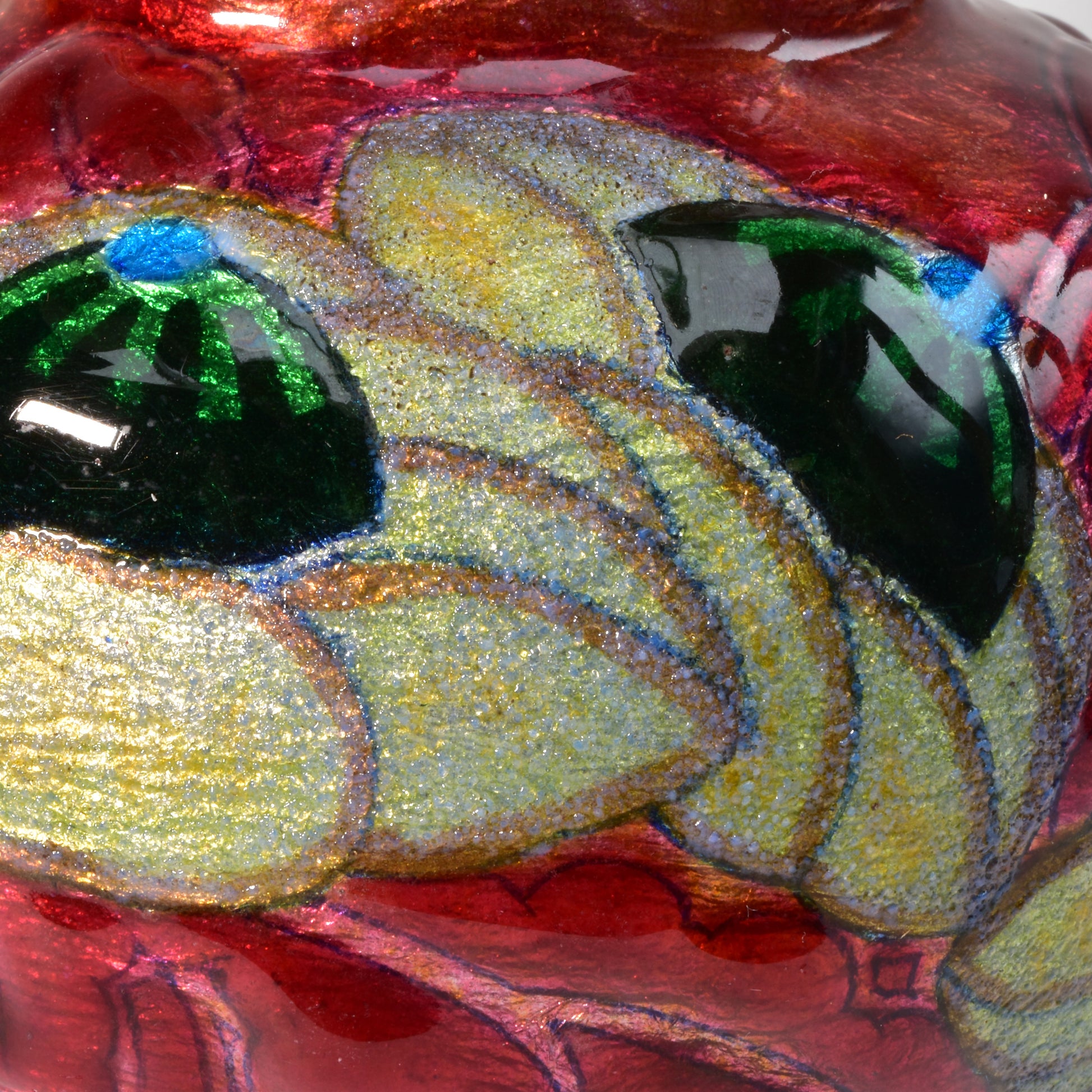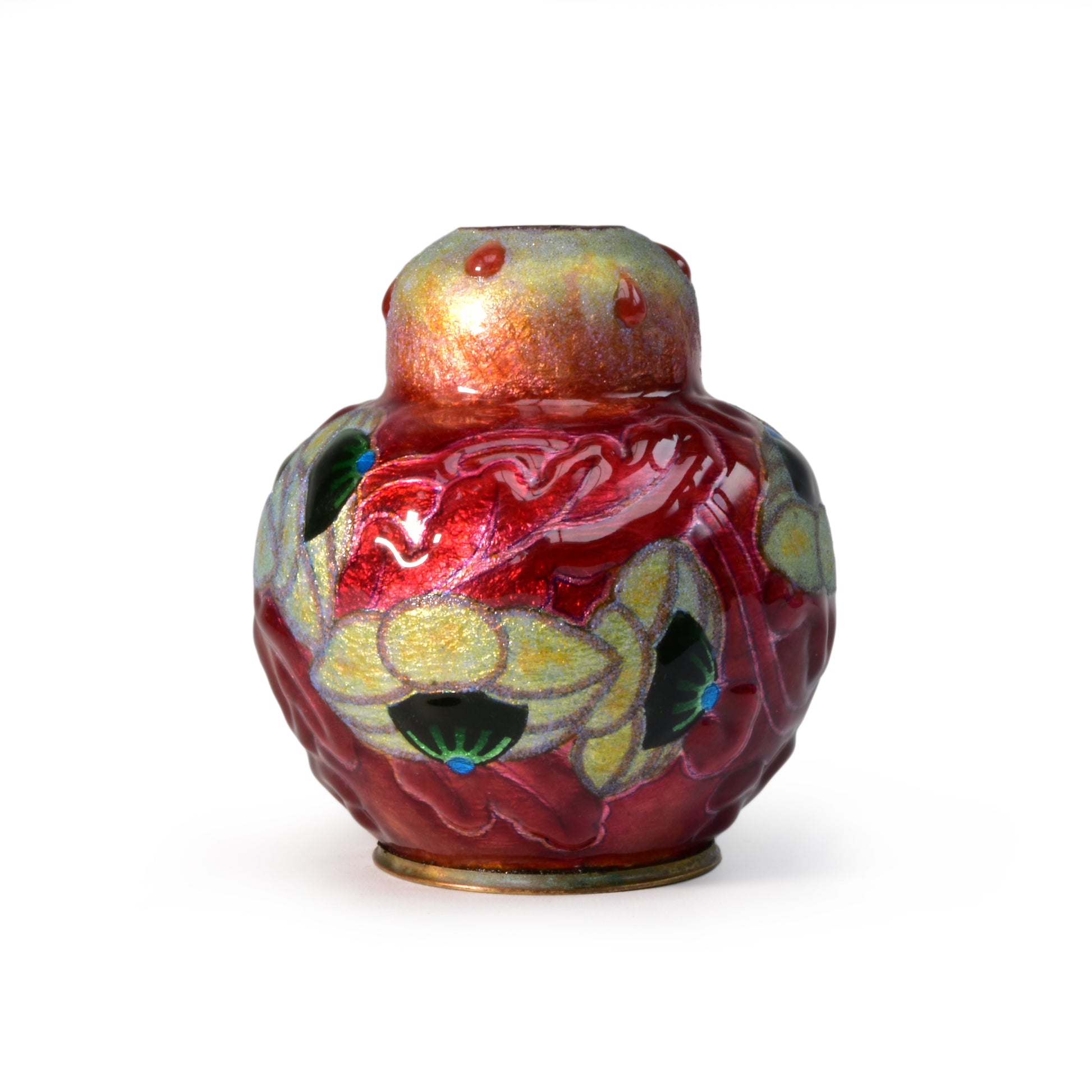 Ce vase de Camille Fauré présente un rare décor d'anémones très très stylisées. C'est un ensemble qui se situe entre la phase initiale réaliste et les ensembles abstraits ultérieurs. Le modèle de ce vase est "188" et est également très rare. Quelle belle couleur ce rouge intense. Signé C.Fauré.Limoges.