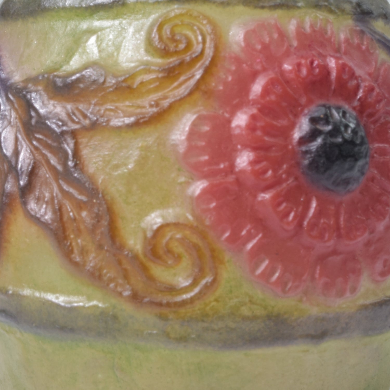 L'un des maîtres de la pâte de foute est Gabriel Argy Rousseau. Sa technique était très exigeante, laborieuse et à petite échelle. La pâte de foute est une technique verrière connue des anciens Egyptiens et explorée par de nombreux artistes français à la fin du XIXème siècle. Une pâte de verre est cuite dans un moule et le moule est rempli de poudres de verre colorées. L'effet pictural avec les couleurs souvent translucides est unique.