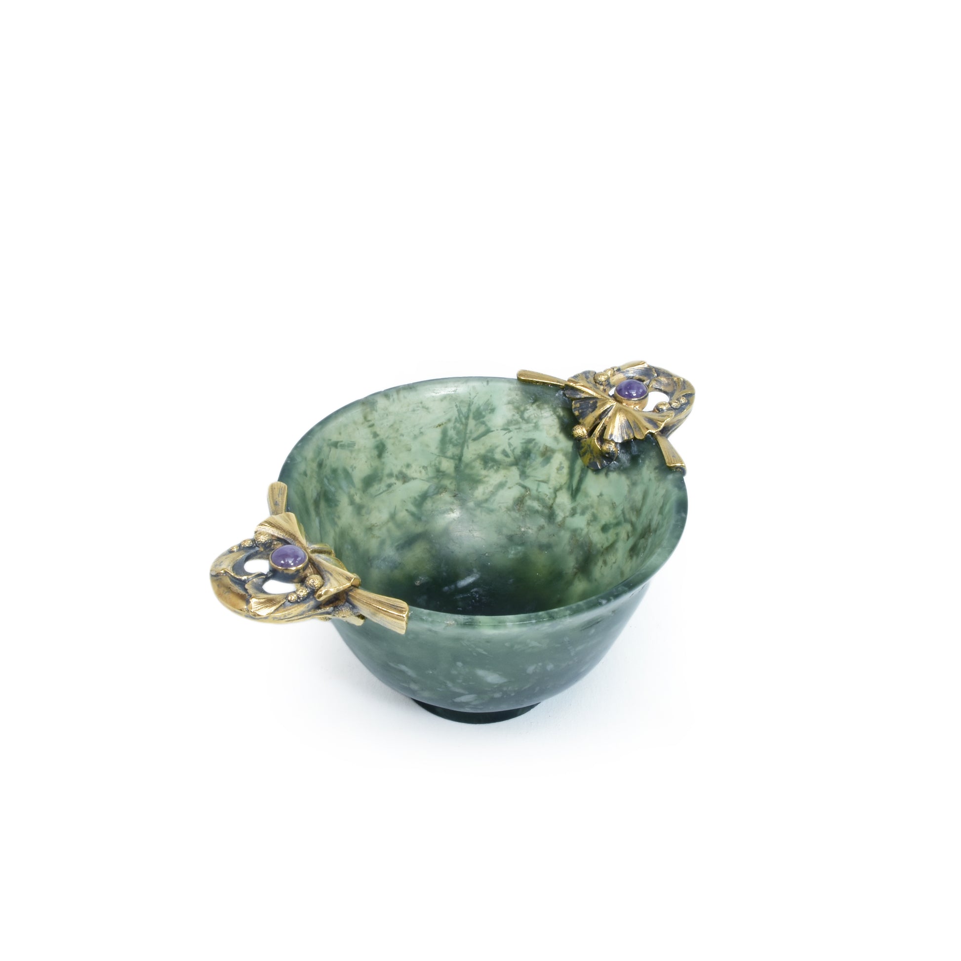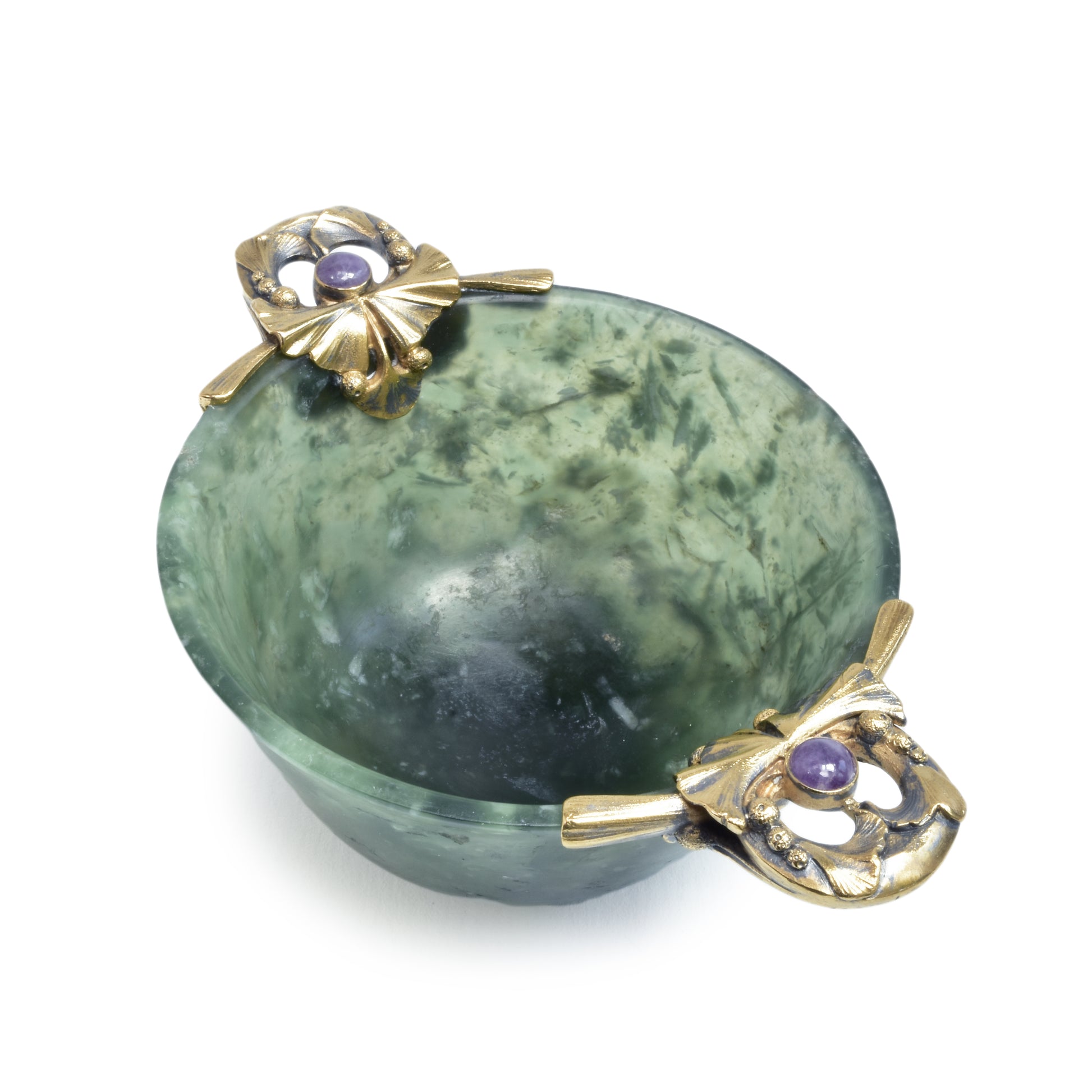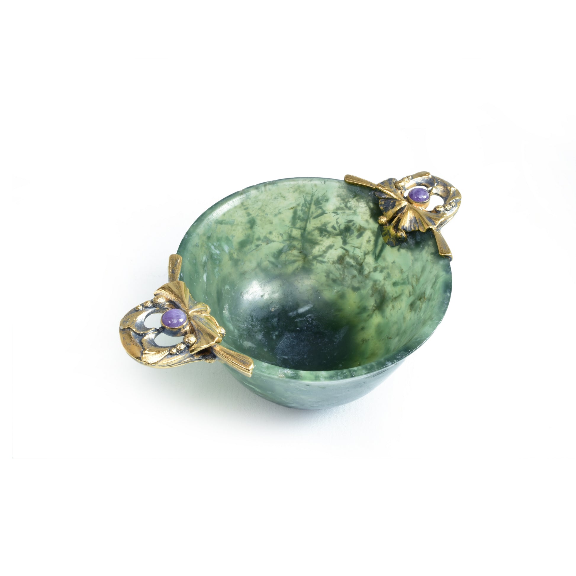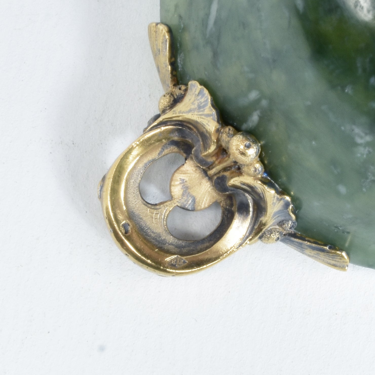 Bijou taille miniature en Préhnite, argent et Améthyste. Fabriqué par le maître orfèvre François Brandebourg (1897-1907) à Paris. Rare Art Nouveau de la plus haute qualité.