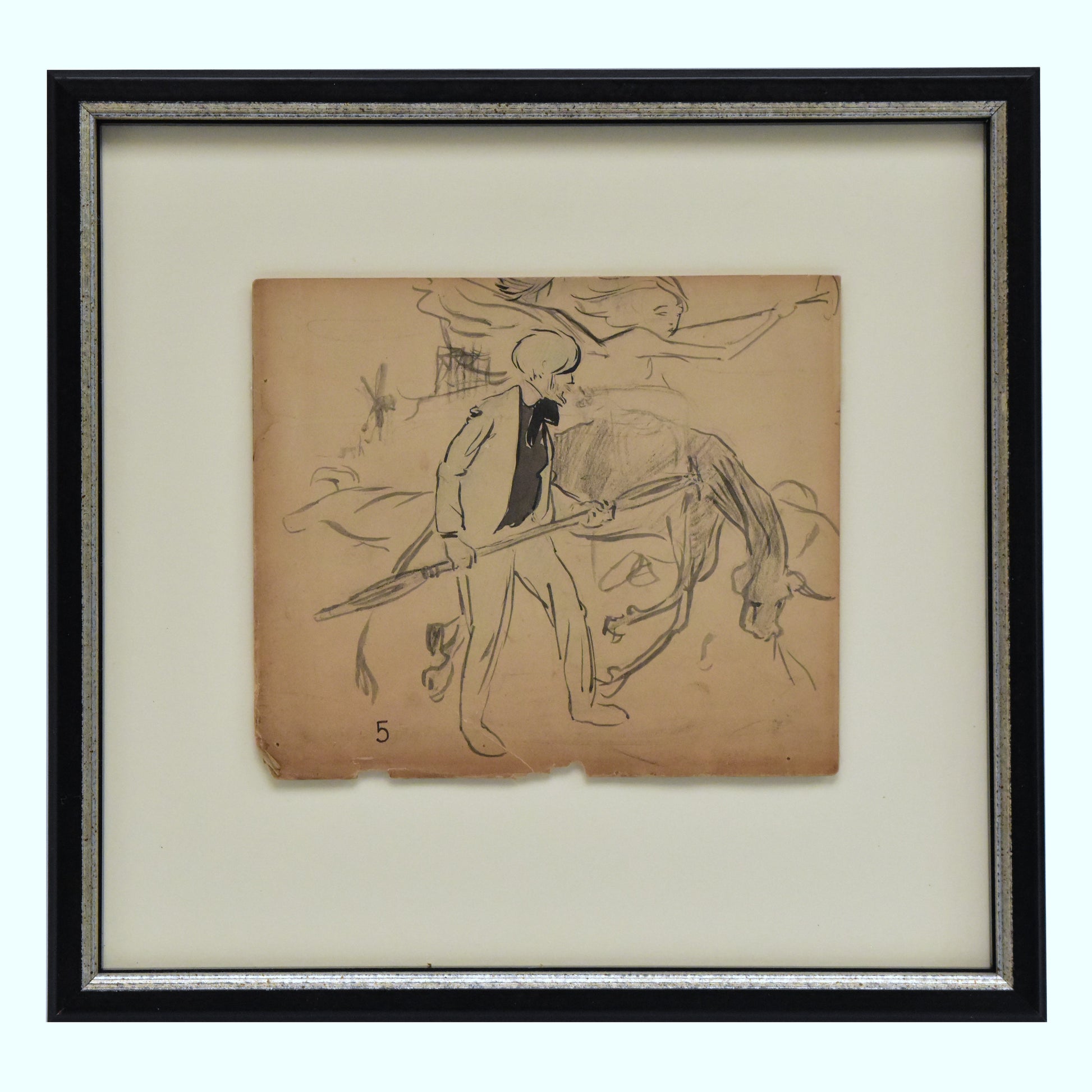 Vroeg werk van Jaques Villon, dat hij maakte als illustratie voor een van de tijdschriften waar hij toen voor werkte. Op de achterzijde van de oude inlijsting staat ook de titel; Bal Masque ( La Bastide....... )