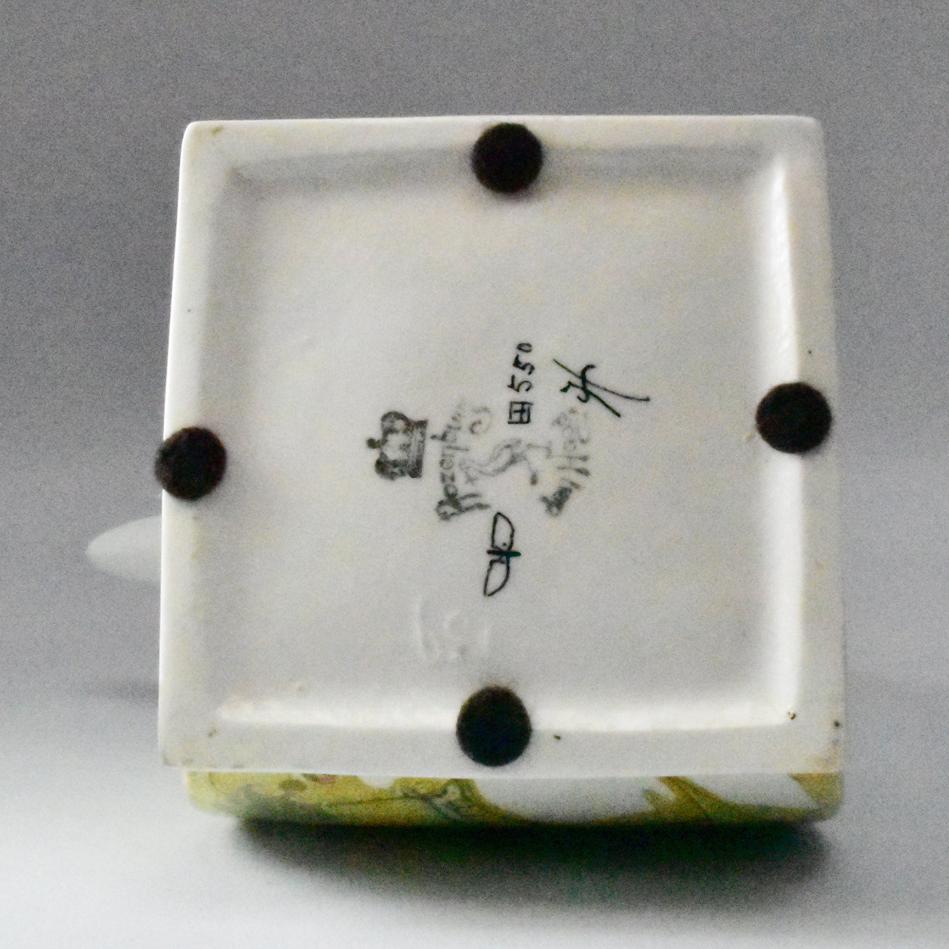 Zeldzame kan in eierschaal porselein van Rozenburg in Den Haag. 1906,geschilderd door Cornelis Willem Johannes t'Hart. order no. 550 5 oktober 1906. Model nr 159p. 27 cm hoog.