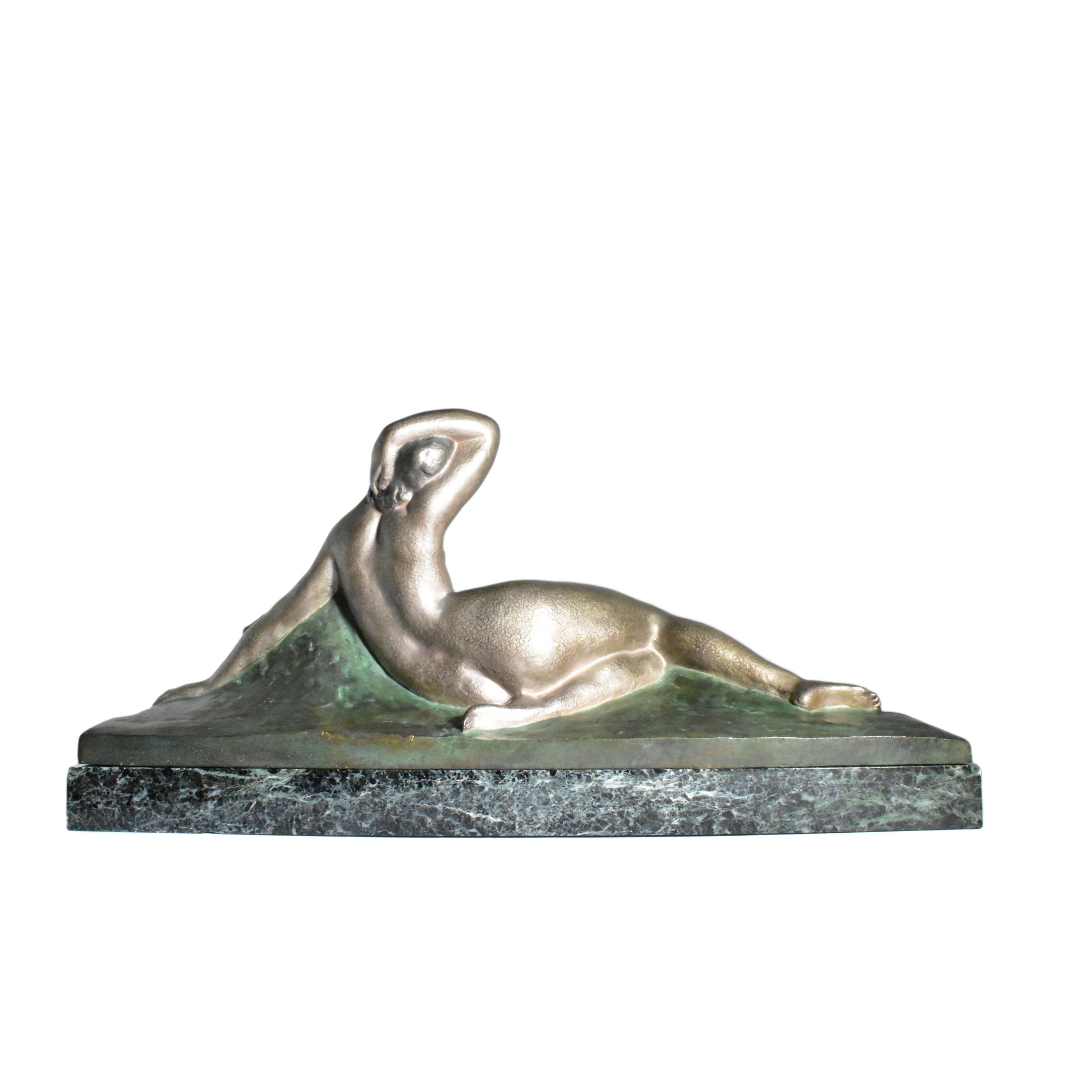 Amedeo Gennarelli ( Napels1891-Parijs1943). Rond 1909 verhuisde hij naar Parijs. Hij exposeerde van 1913 tot 1936 op de jaarlijkse Salon des Artistes Français in Parijs. Gennarelli werkte ook onder het pseudoniem 'Jean Ortis'(zie terra cotta in onze collectie). Gennarelli werkte met diverse materialen, zoals marmer, terra cotta en brons. Hij is vooral beroemd om zijn vrouwelijke naakten en zijn gevoelige kinderportretten. Zijn elegante art deco stijl en kwaliteit wordt hoog gewaardeerd en zijn werk is gezocht onder verzamelaars.