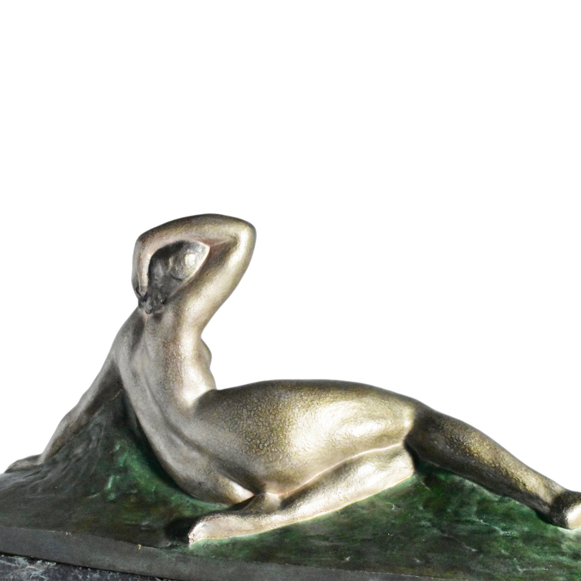 Deze venus is in drie kleuren gepatineerd. Het lichaam is eerst verzilverd en daarna in licht sepia gepatineerd, terwijl de haren donker zijn gepatineerd. De basis is kopergroen en bruin gepatineerd. Typisch voor de beelden van Gennarelli is zijn creatieve vermogen om een correct anatomisch lichaam in een bijna abstracte compositie te vormen. Let er b.v. eens op hoe hals hoofd en opgeheven arm samen een geheel vormen en in het verlengde liggen van de steunende arm. Deze diagonale rechte lijn vormt een tegenwicht voor de gespannen boogvorm van de benen.